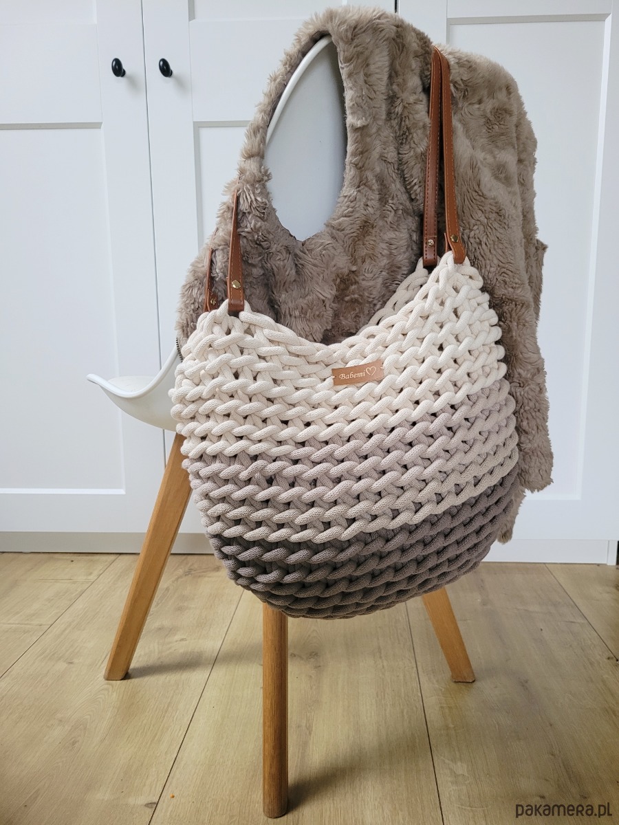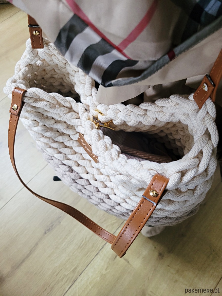 Przepiękna i szalenie modna torba wykonana z bardzo grubego, aczkolwiek lekkiego sznurka.