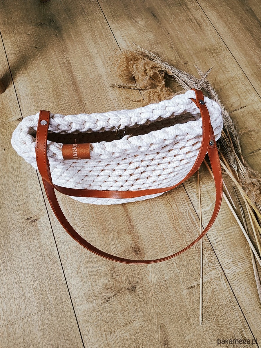 Torba typu worek, posiada metalowe zapięcie, które jest wdziergane w torbę, dlatego też nie odpruje się, ani nie odepnie pod wpływem dużego oporu. Torba bardzo ładnie uwypukla się, dzięki temu, że nie posiada ograniczającej jej podszewki.