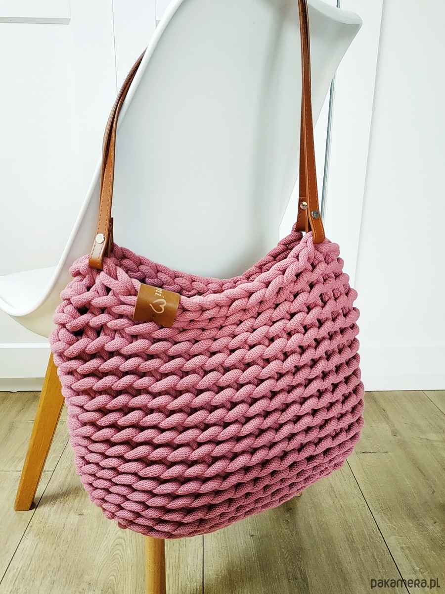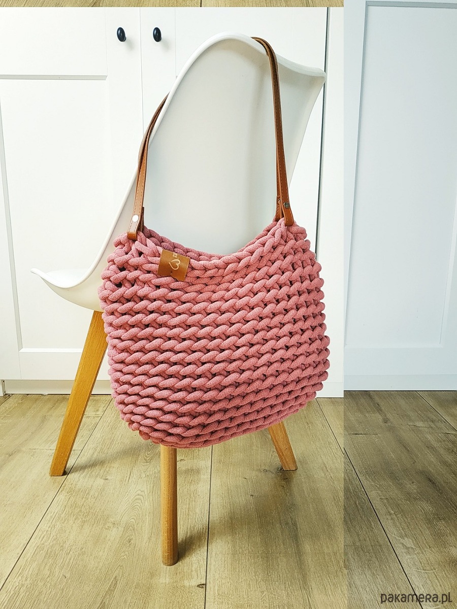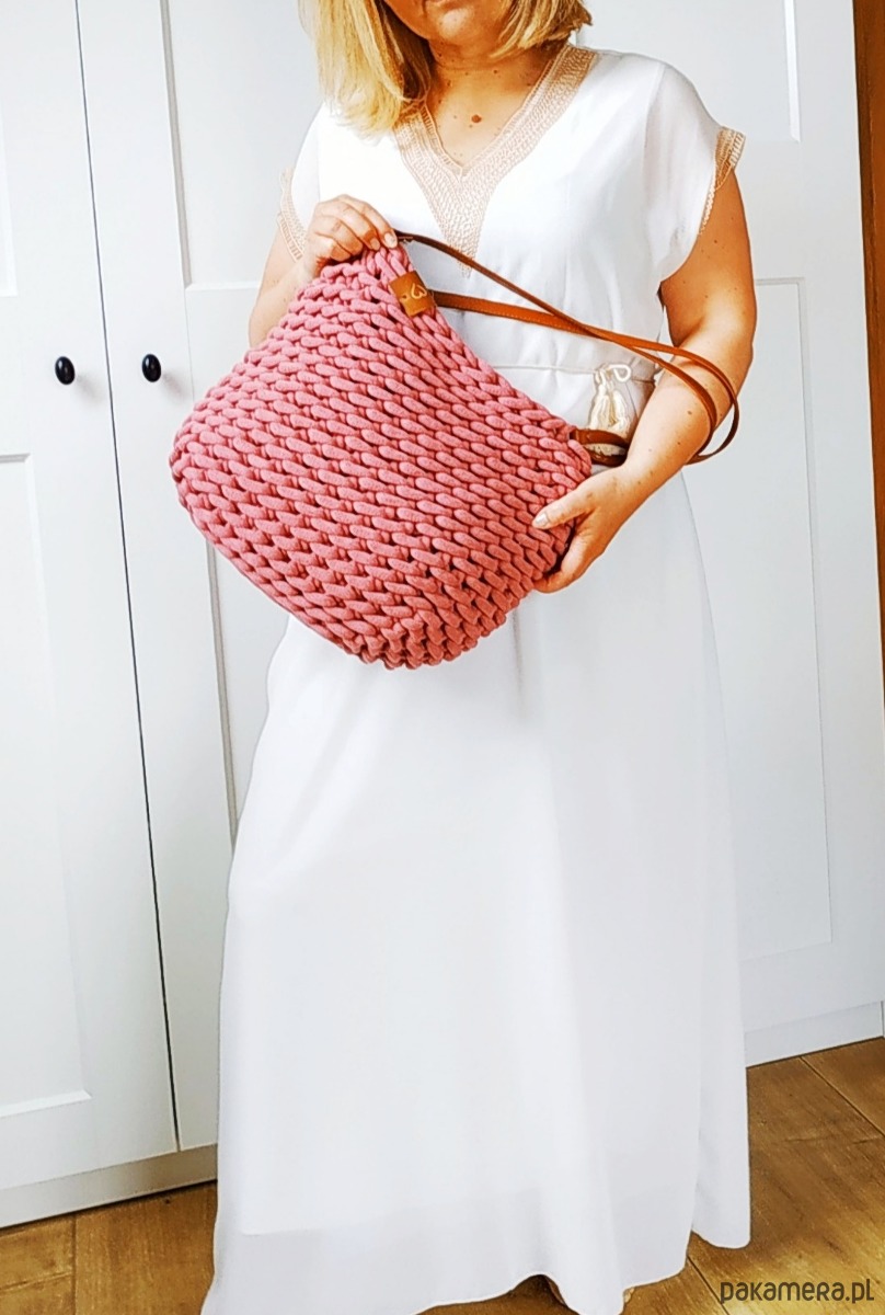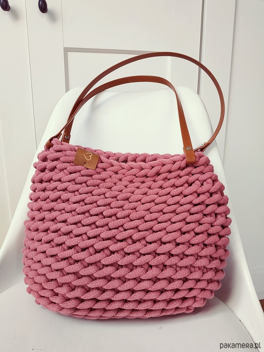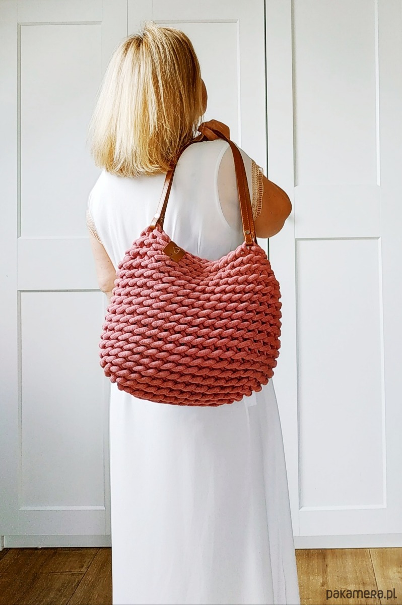 Duża torba wykonana na szydełku przepięknym luźnym splotem. Wykonana jest z grubego, mięsistego aczkolwiek lekkiego sznurka. torba jest miękka i miła w dotyku.