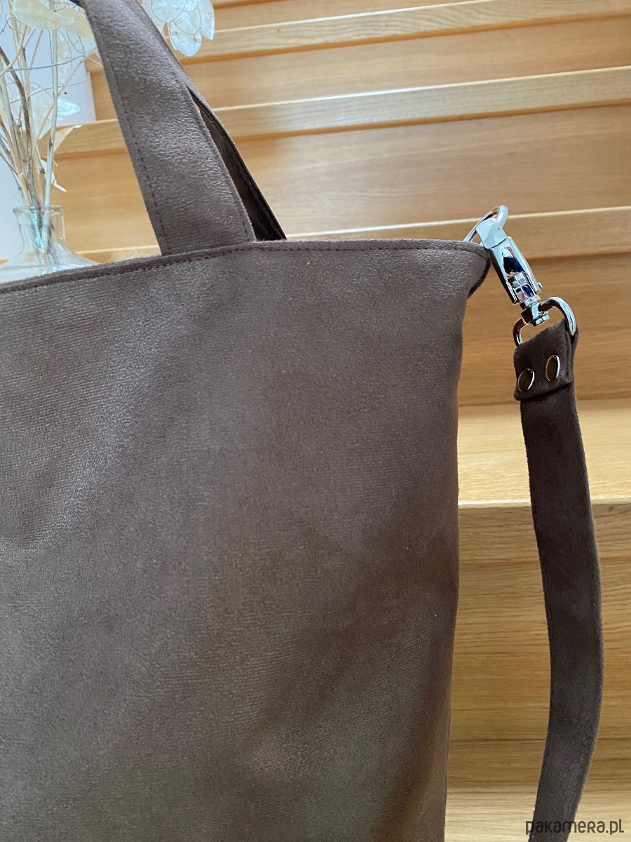 Torba wykonana z alcantry (syntetycznego zamszu).