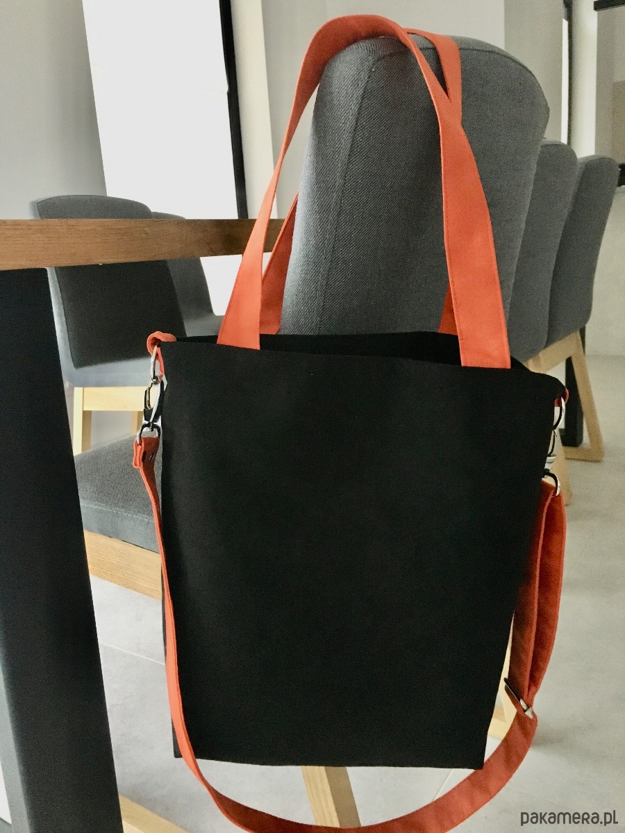 Torba wykonana z alcantary (syntetycznego zamszu).