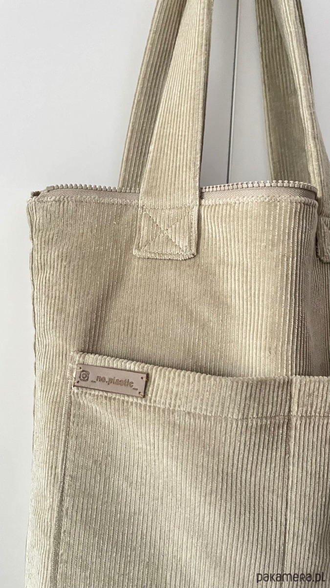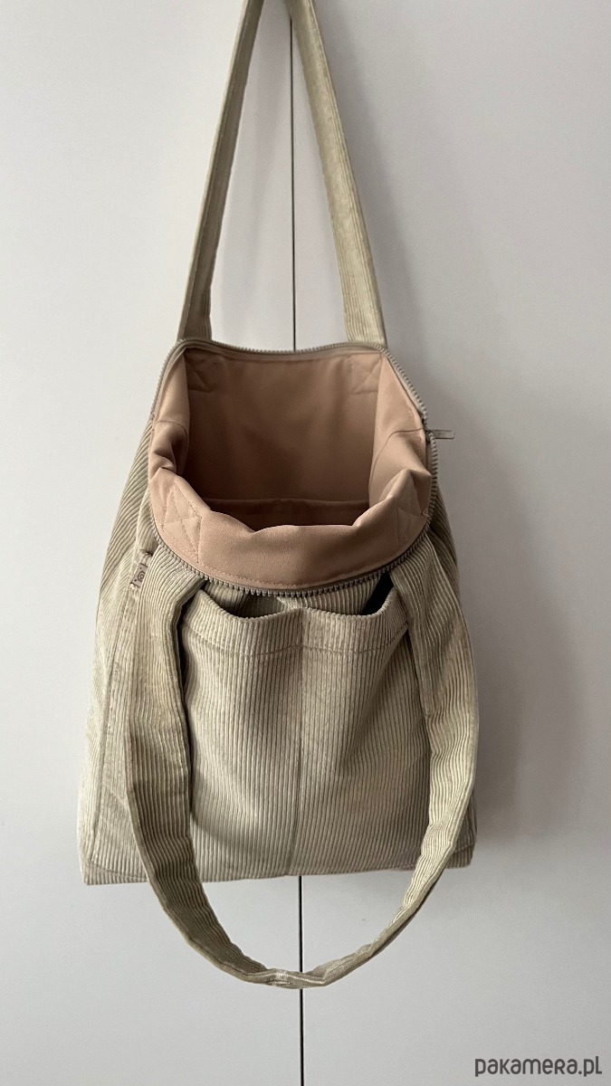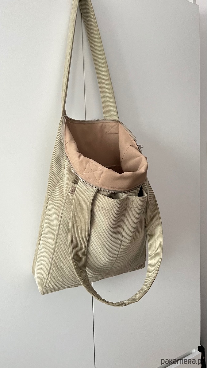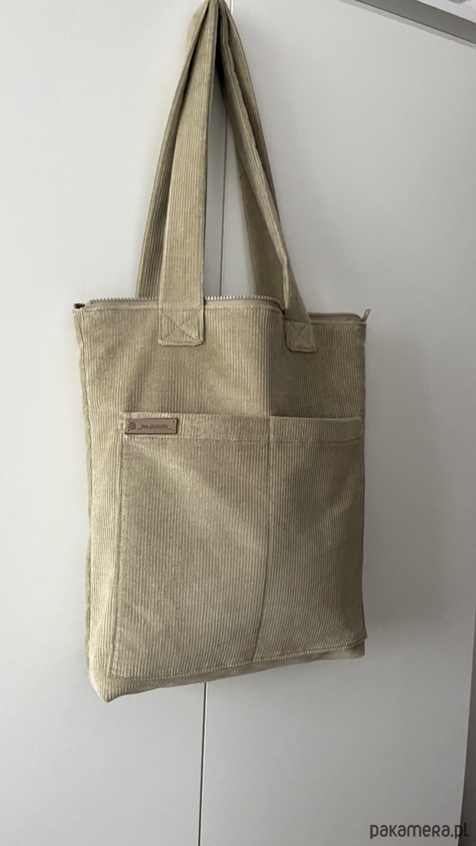 Torba wykonana z wysokiej jakości sztruksu , zapinana na zamek błyskawiczny, posiada kieszenie wewnętrzne i zewnętrzne. rozmiar 38 na 41 cm, długość rączki 67 cm