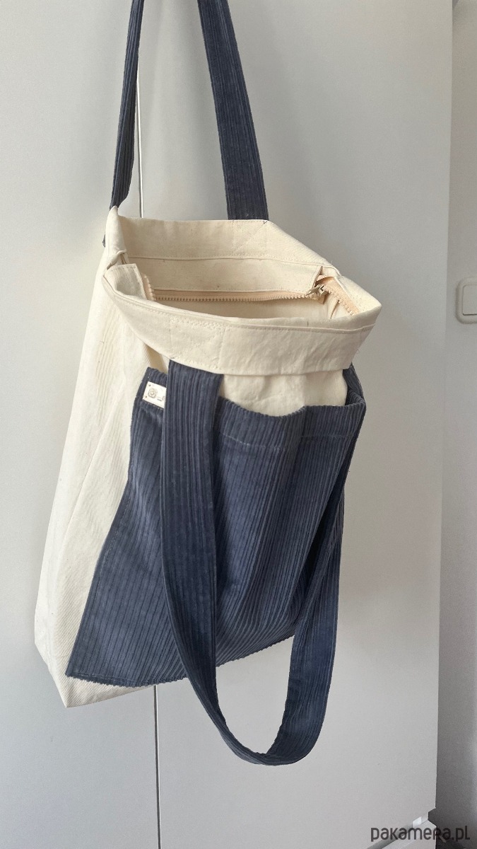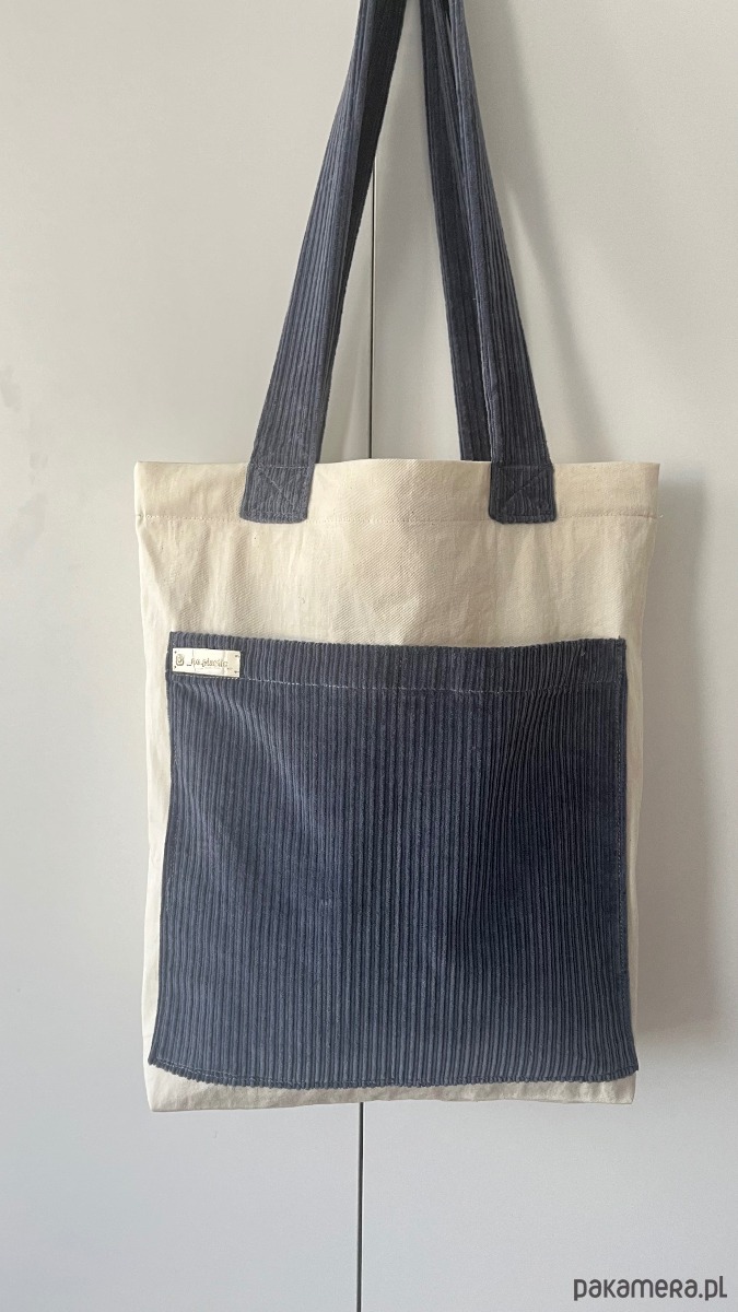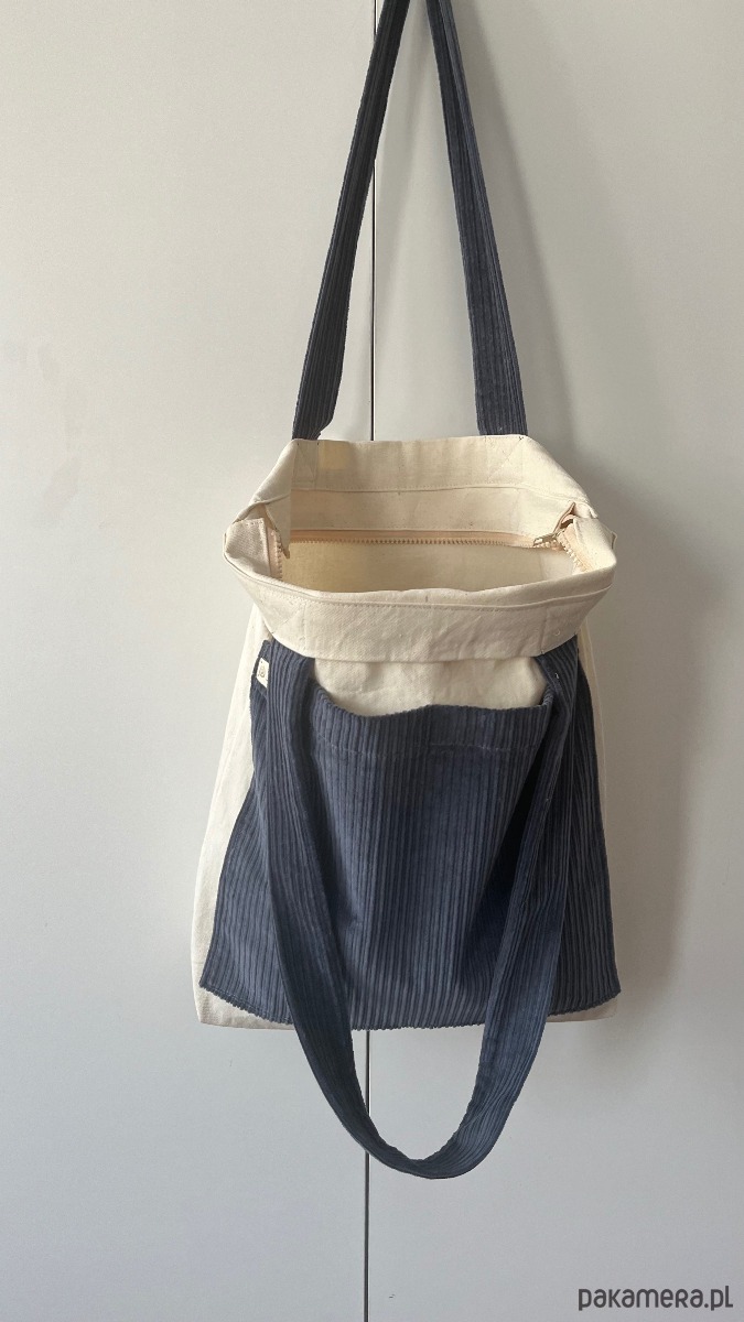 Bawełniana torba zapinana jest na zamek błyskawiczny i posiada dwie pojemne kieszenie. Rozmiar 38 na 41 cm