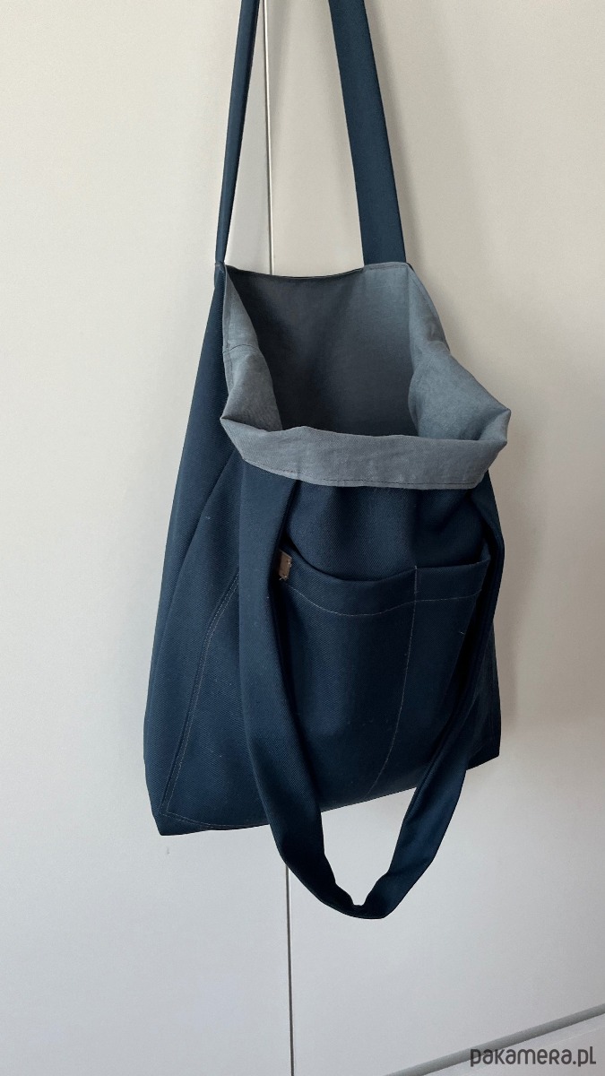 Torba jest wykonana z bawełny na podszewce. dwie kieszenie wewnątrz i dwie na zewnątrz. Wymiary: 38 x 41 cm