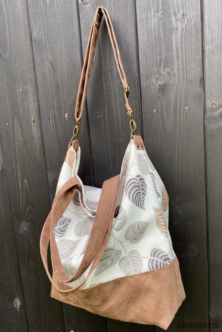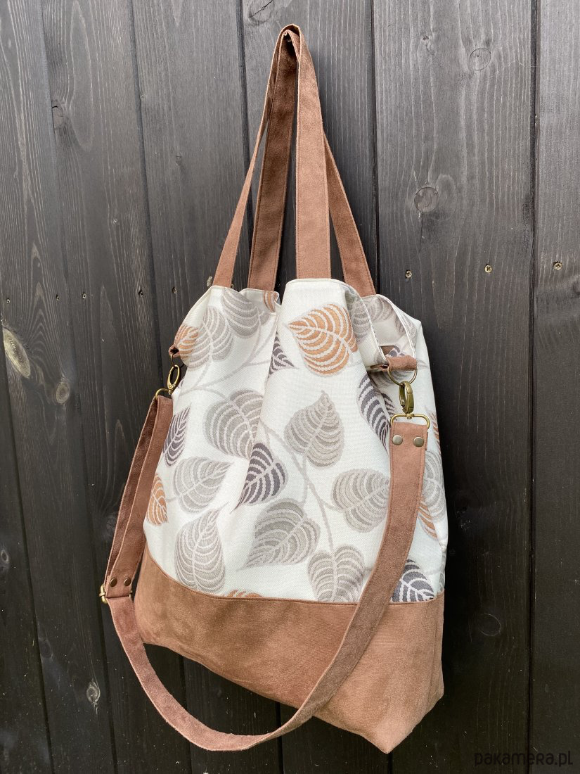 wykonana z workowatej tkaniny o płóciennym splocie w połączeniu z alcantrą.