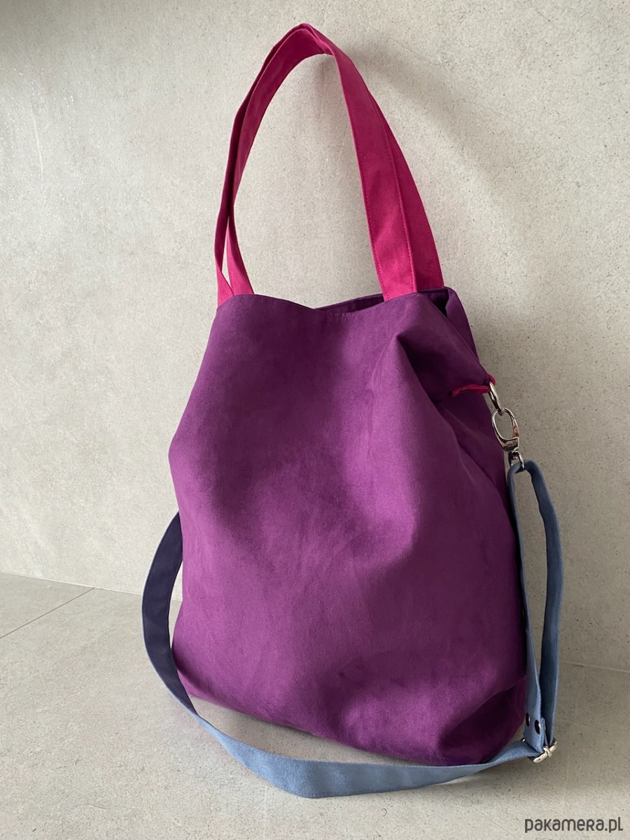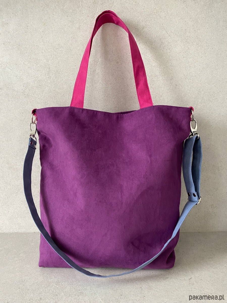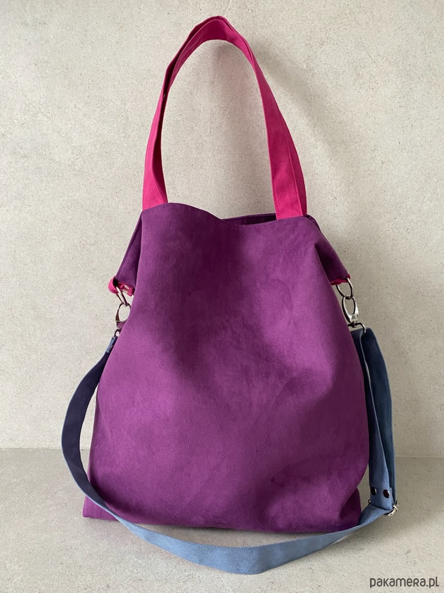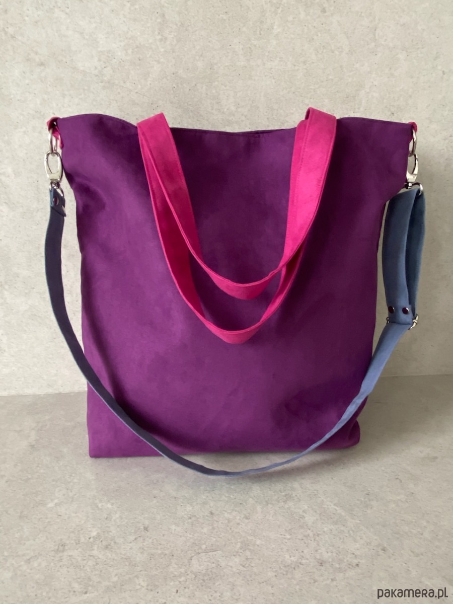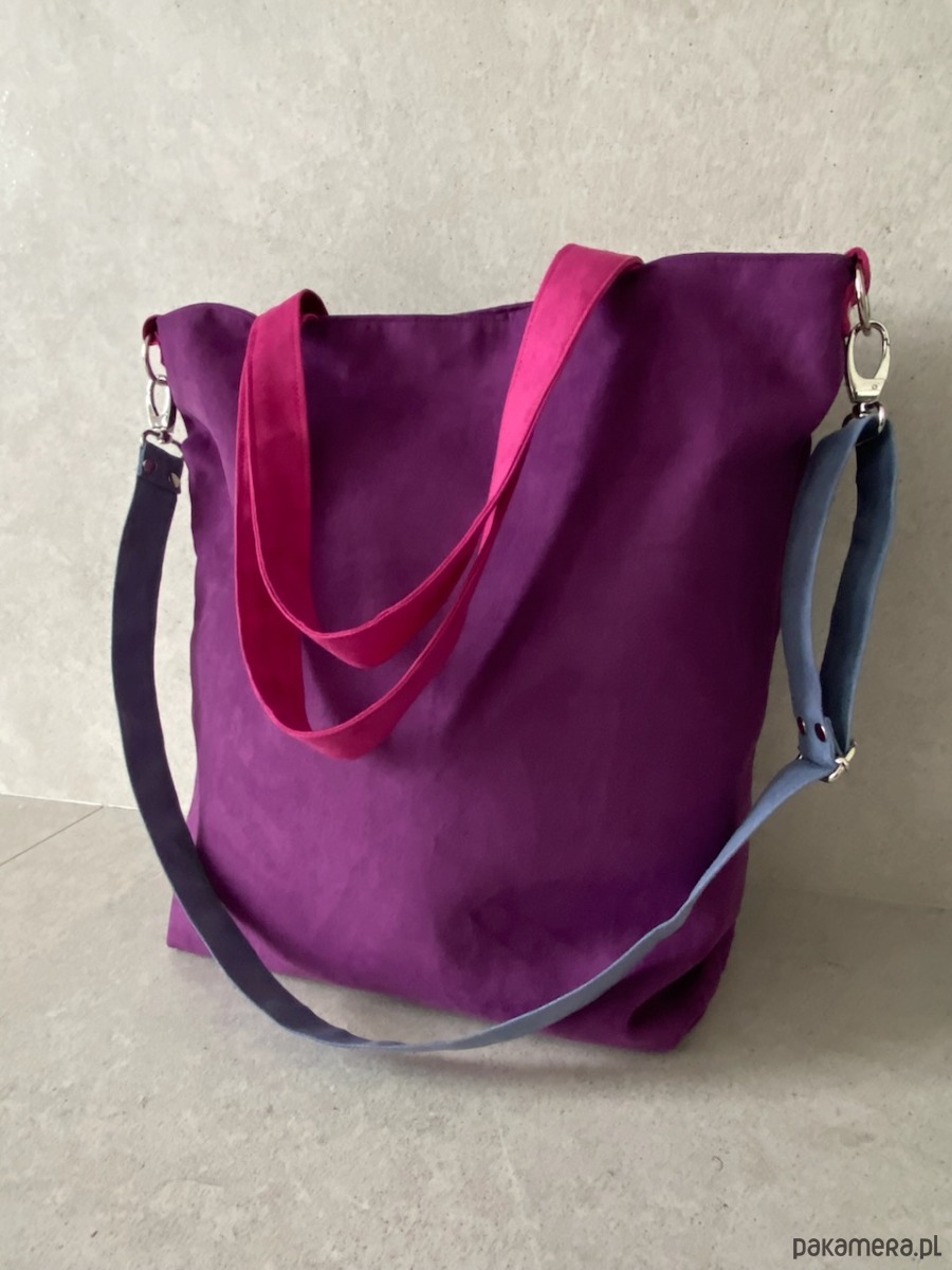 Torba na ramię XL - fiolet, fuksja, szaroniebieski