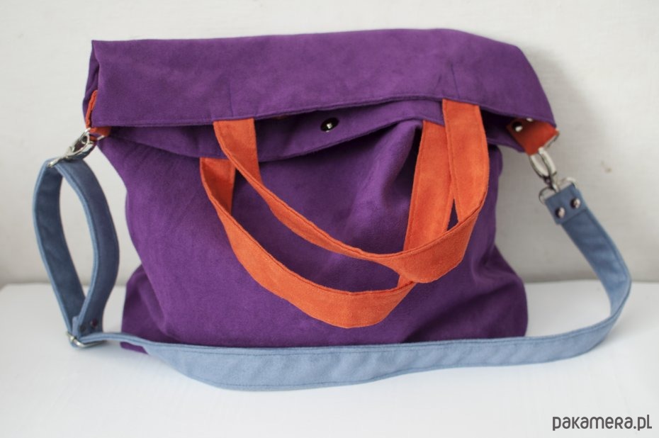 Torba na ramię XL - fiolet,pomarańcz,szaroniebieski