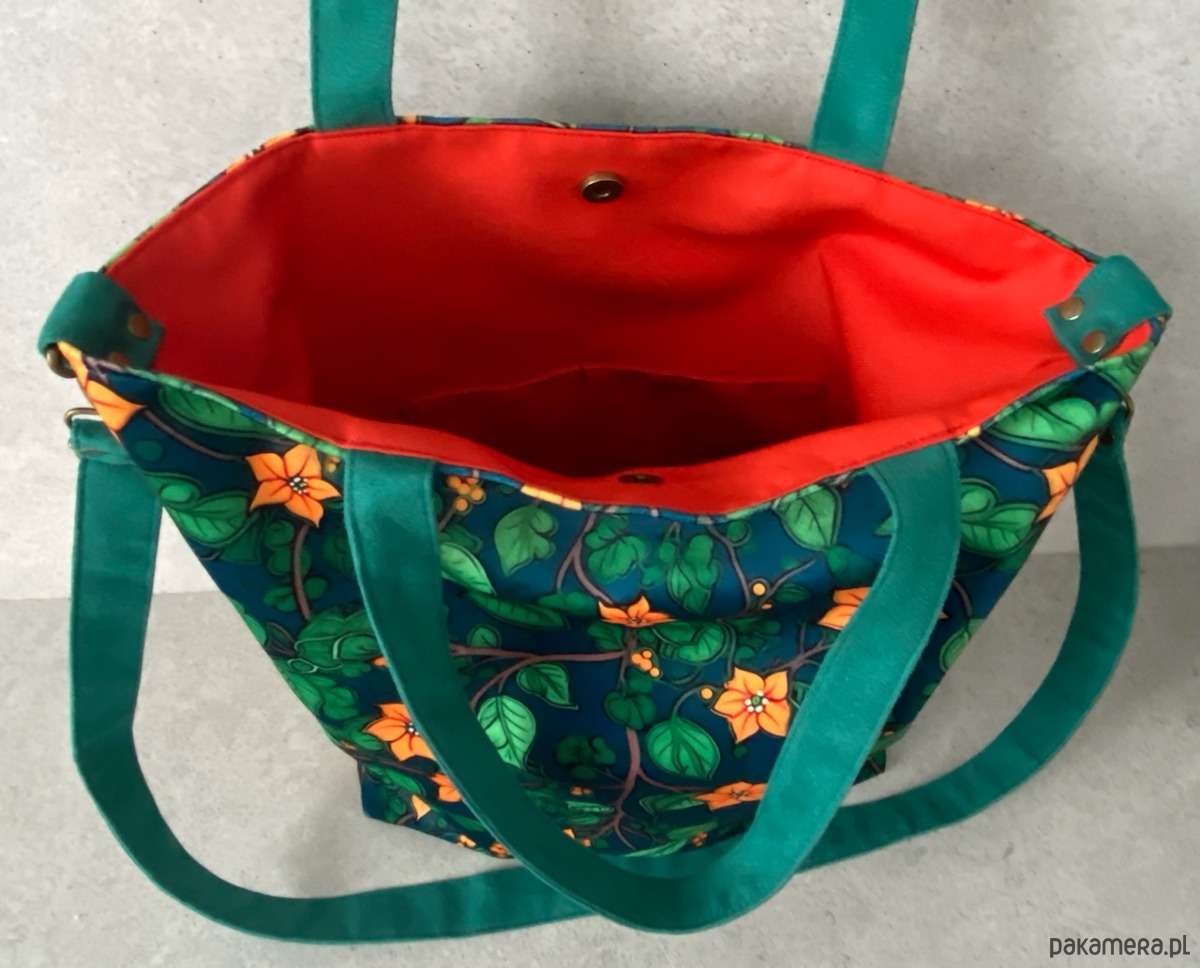 W środku wykończona podszewką, z dwudzielną kieszonką.