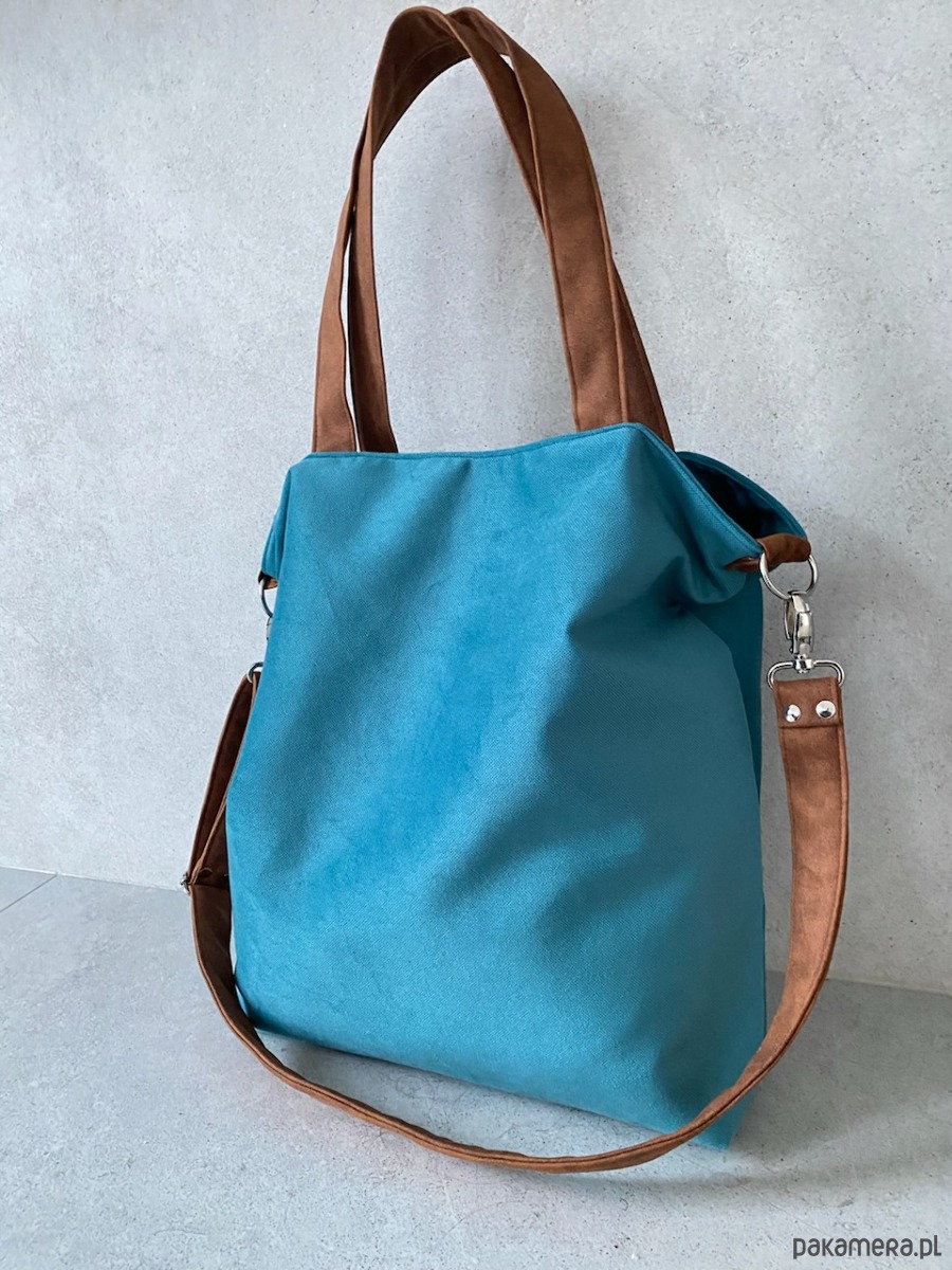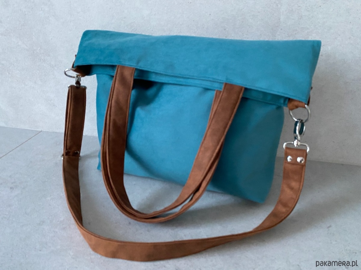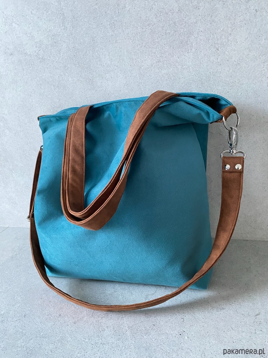 Torba na ramię XL - turkus, koniak