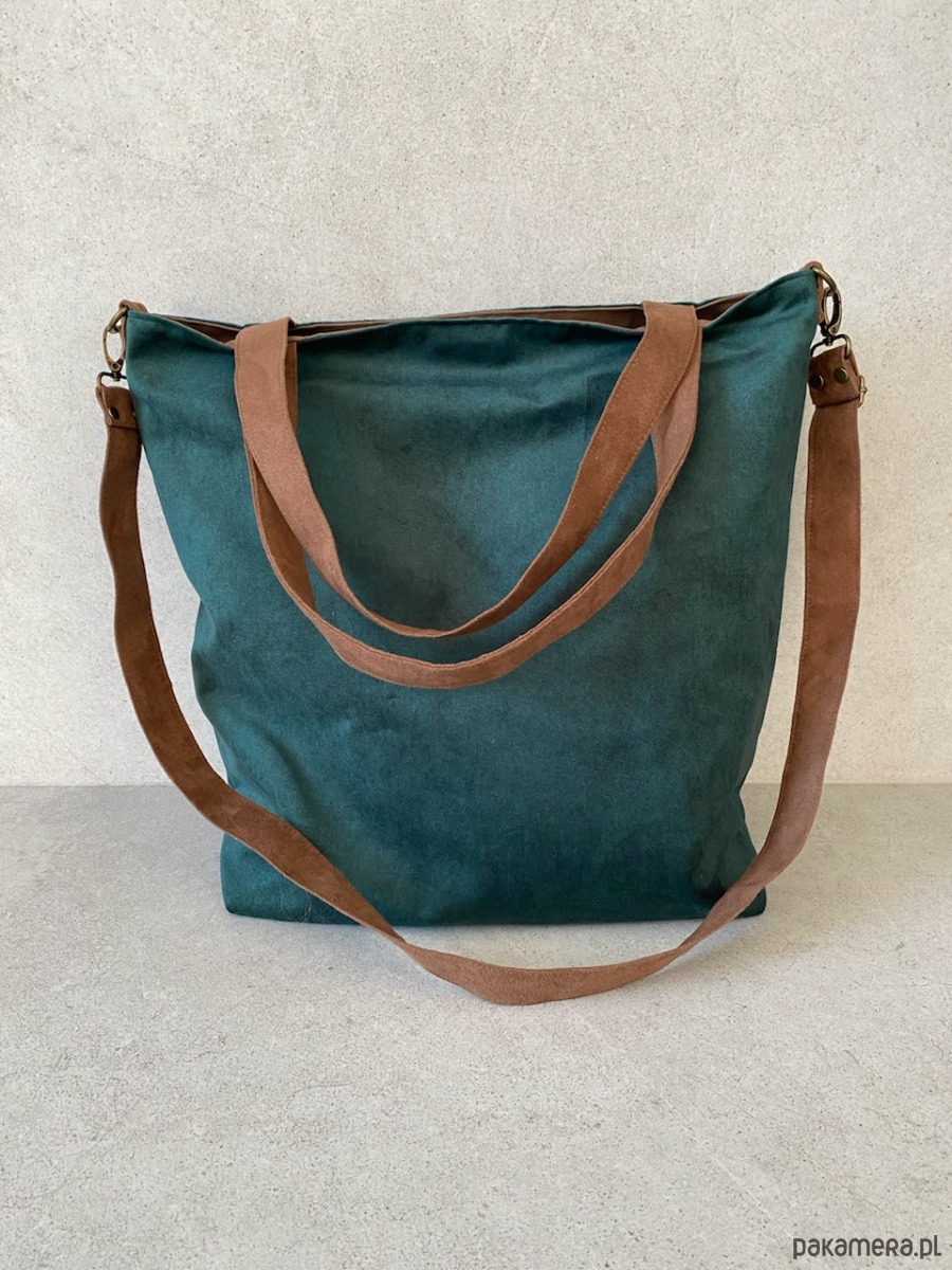 Torba na ramię XXL - butelkowa zieleń, brąz