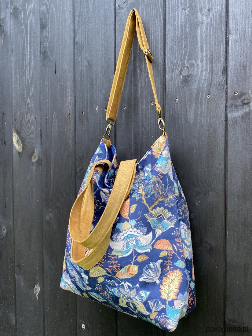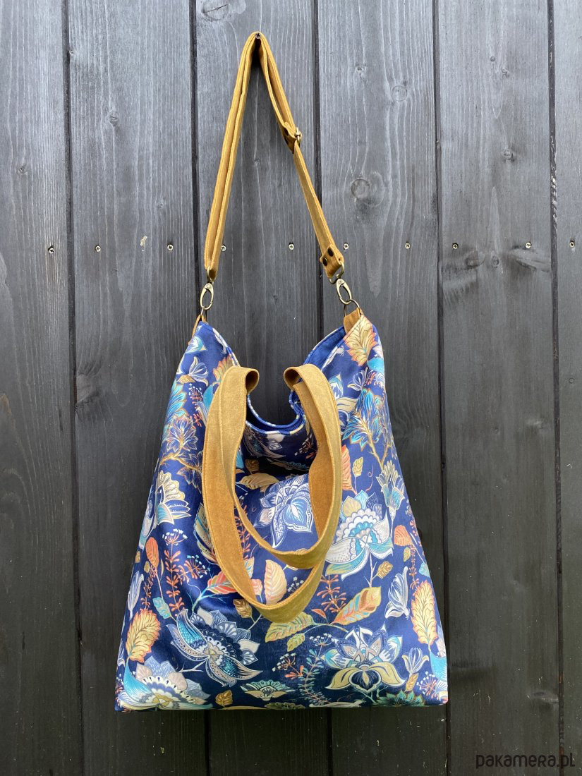 Torba na ramię XXL - print jesienne kwiaty