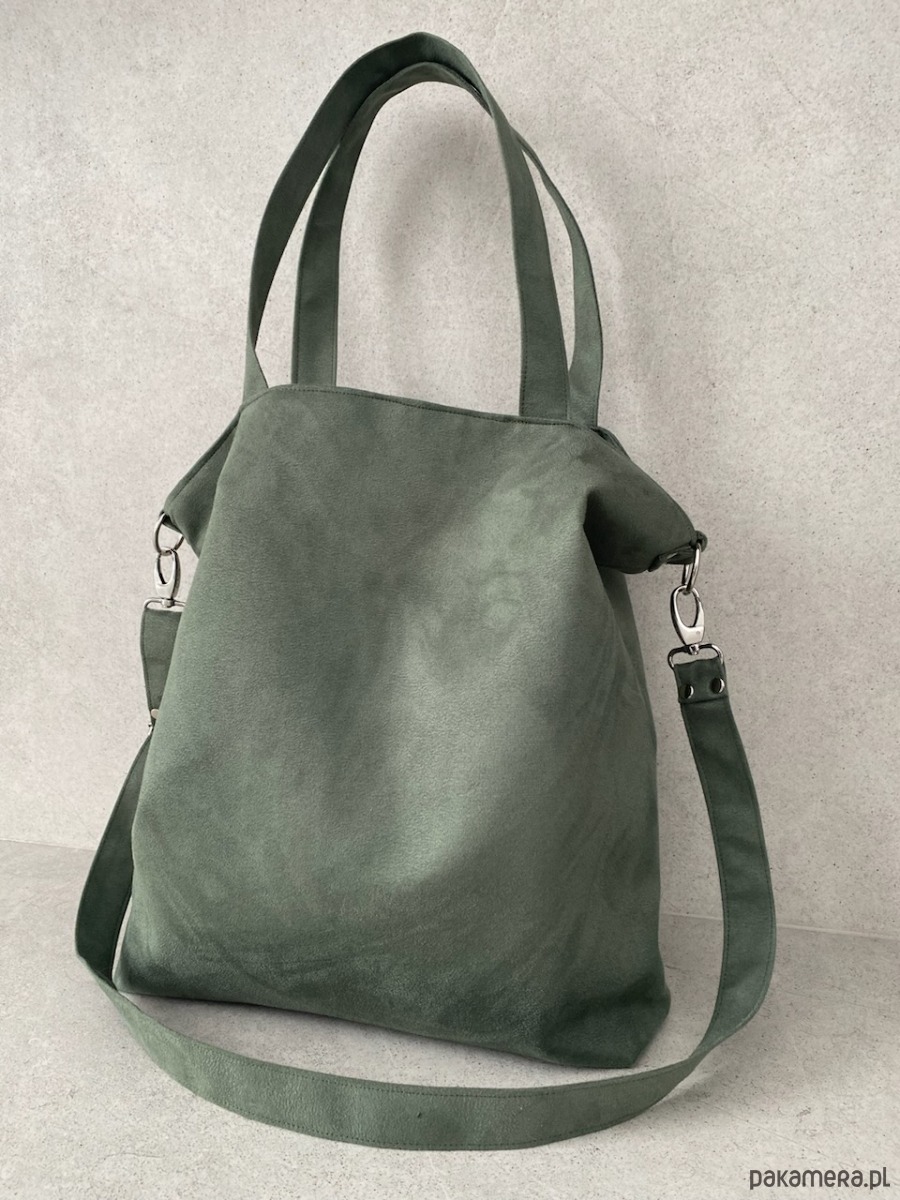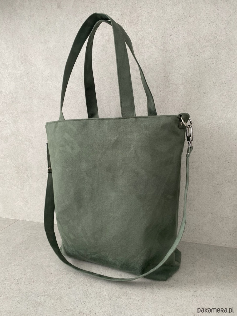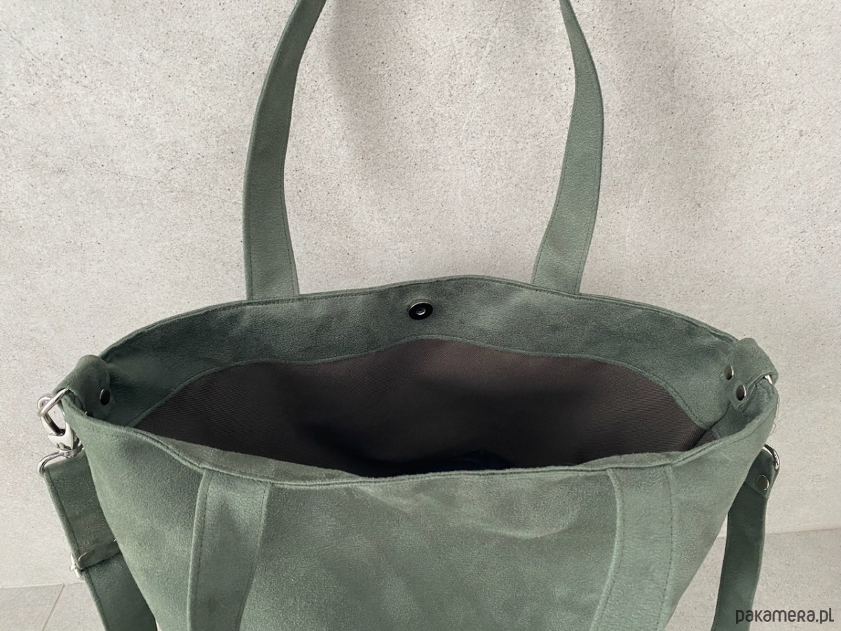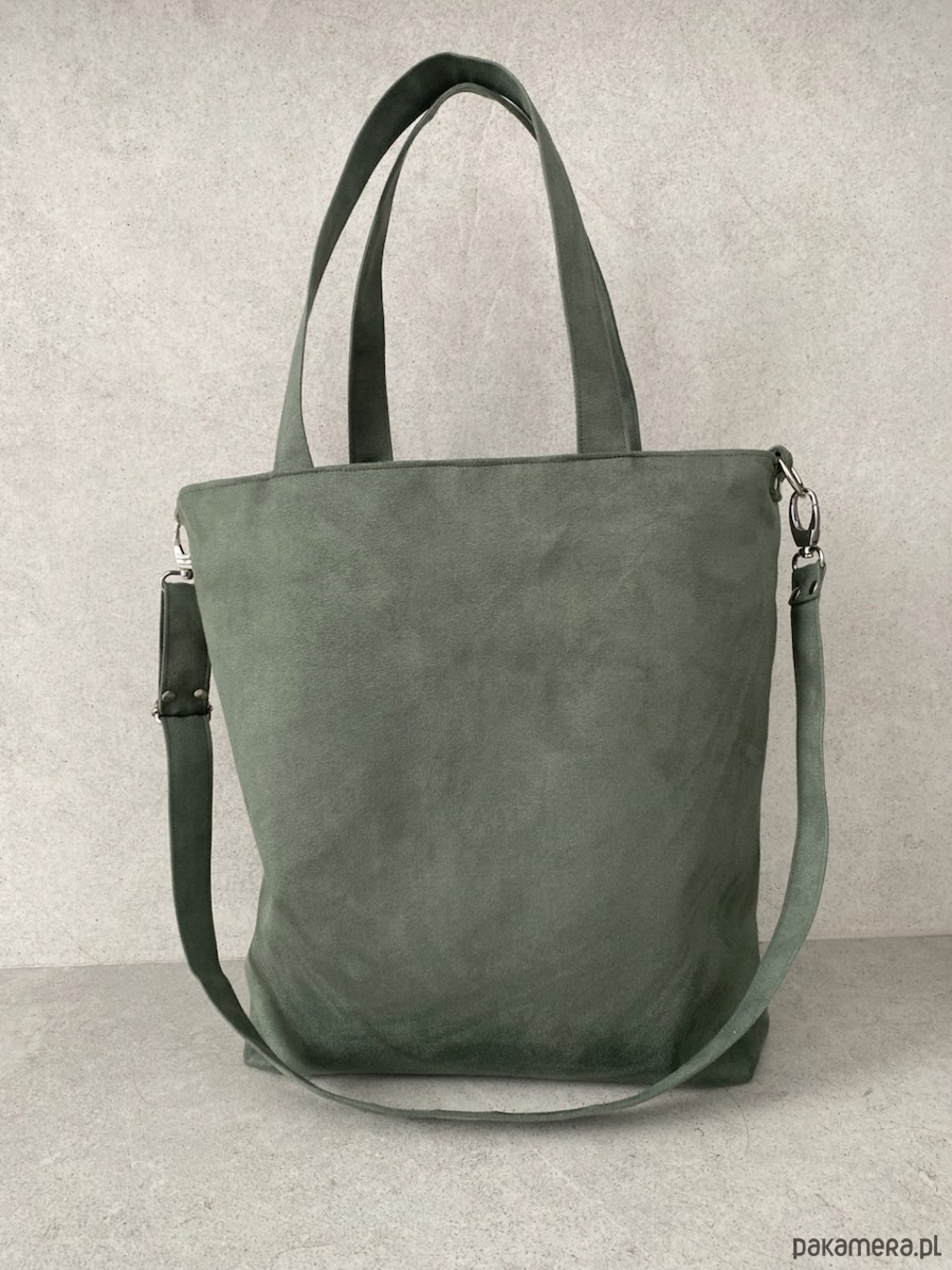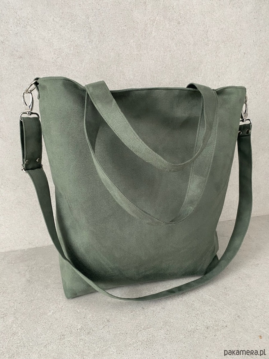 Przepastna torba wykonana z alcantry (syntetycznego zamszu).