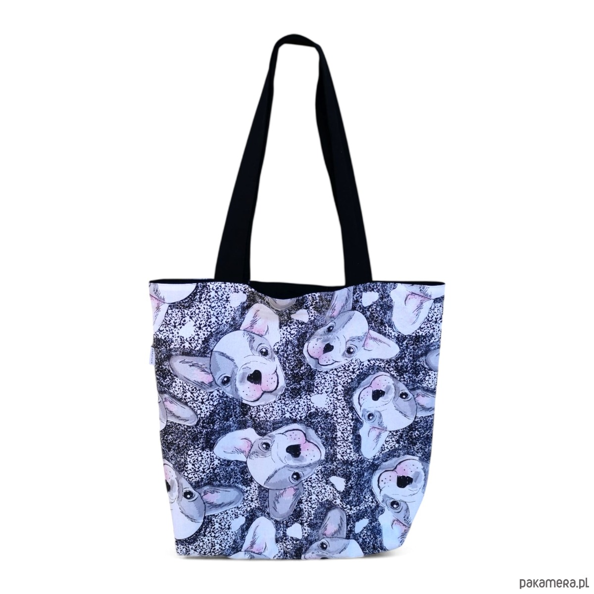 Torba na zakupy shopperka eko siatka torba na ramię shopper pieski buldogi