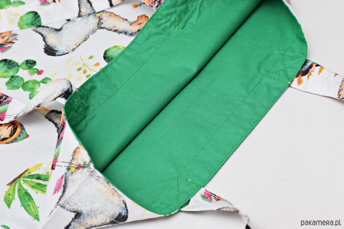 Ekologiczna torba na zakupy uszyta z bawełny 100% i bawełnianą zieloną podszewką.