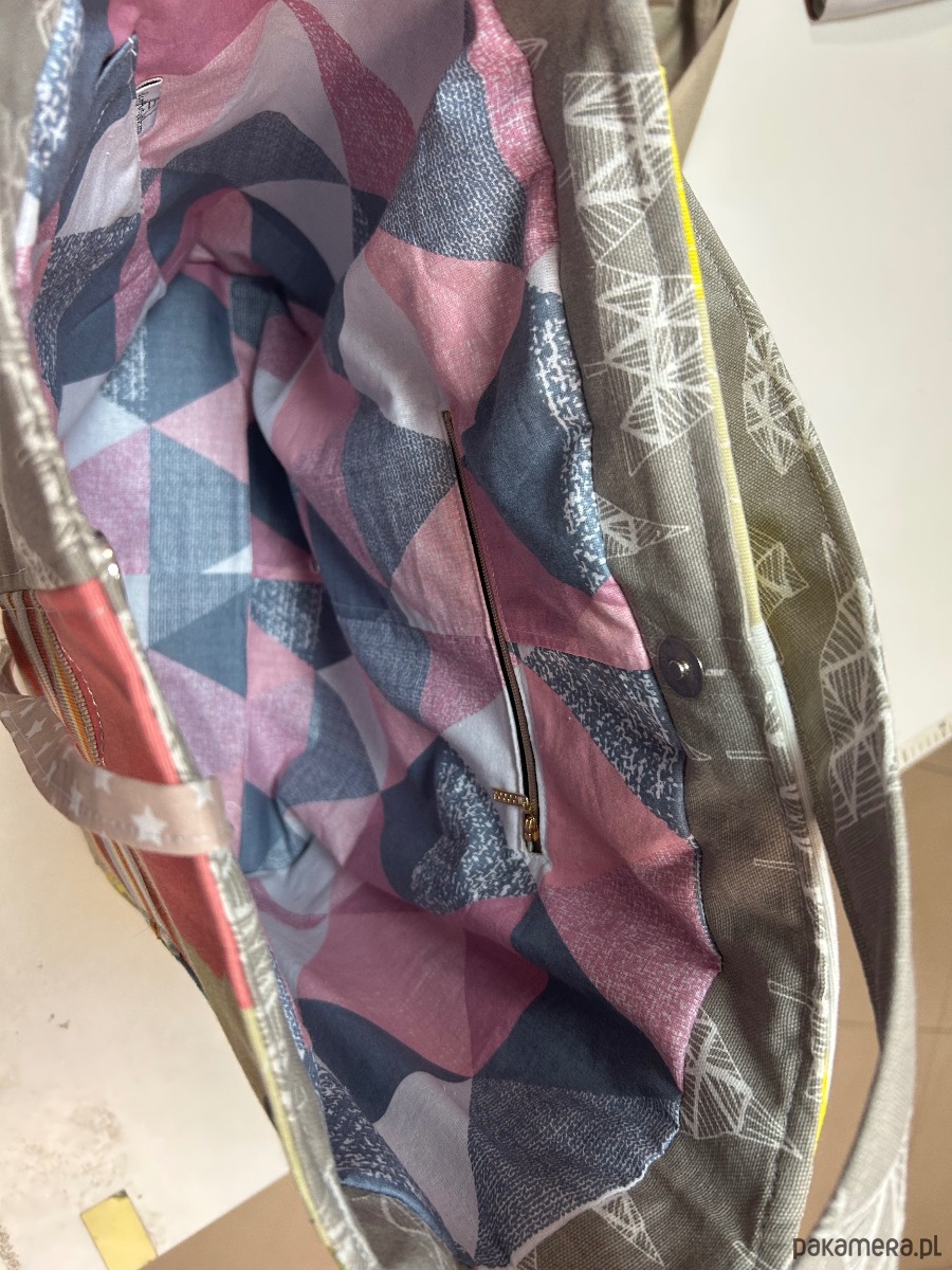 Nasza ręcznie szyta torba patchworkowa zawiera: