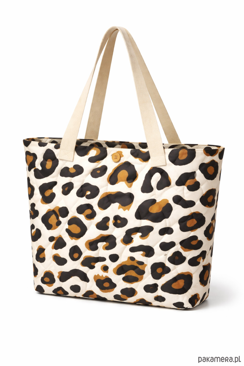 Wyrazista i stylowa torebka wykonana z wysokiej jakości bawełny, w modnym wzorze panterki w odcieniach czerni i ciepłego brązu na jasnym tle. Idealna dla osób, które lubią dodać charakteru swoim stylizacjom.