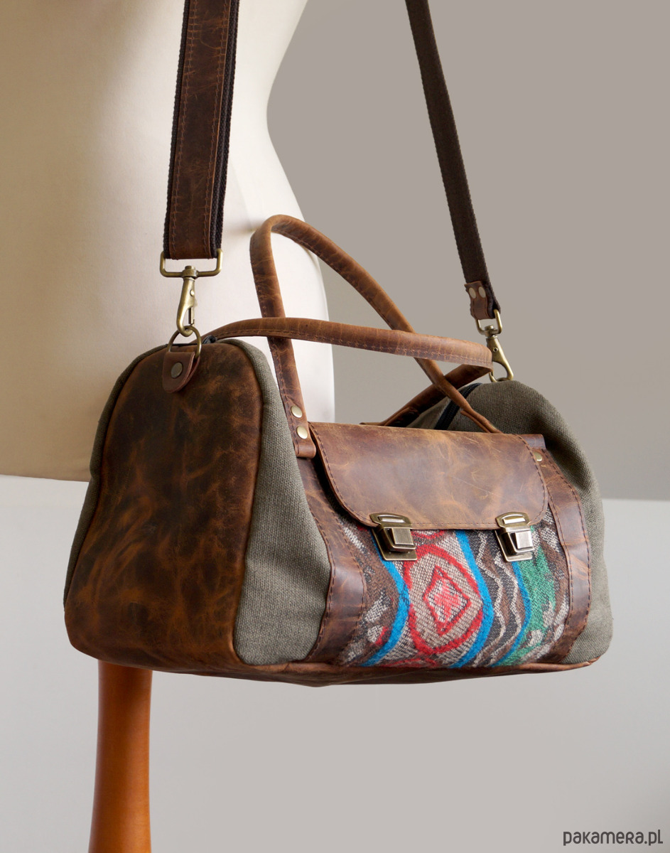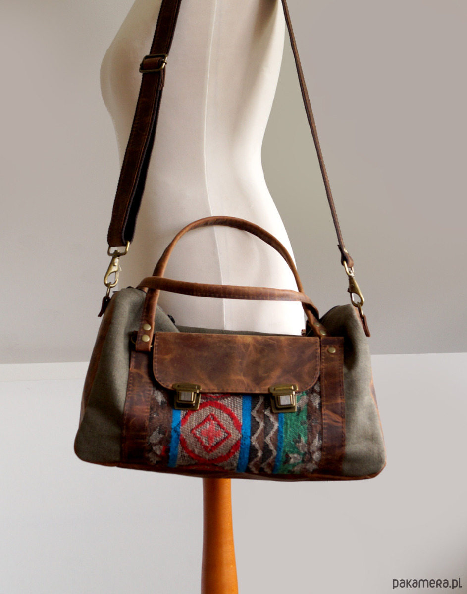 Uszyta z brezentu – bardzo mocnej i wytrzymałej tkaniny, impregnowanej wodo- i ognioodpornie, skóry naturalnej, woskowanej crazy horse, oraz z grubo tkanego płótna, o etnicznym wzorze (również zaimpregnowanego).