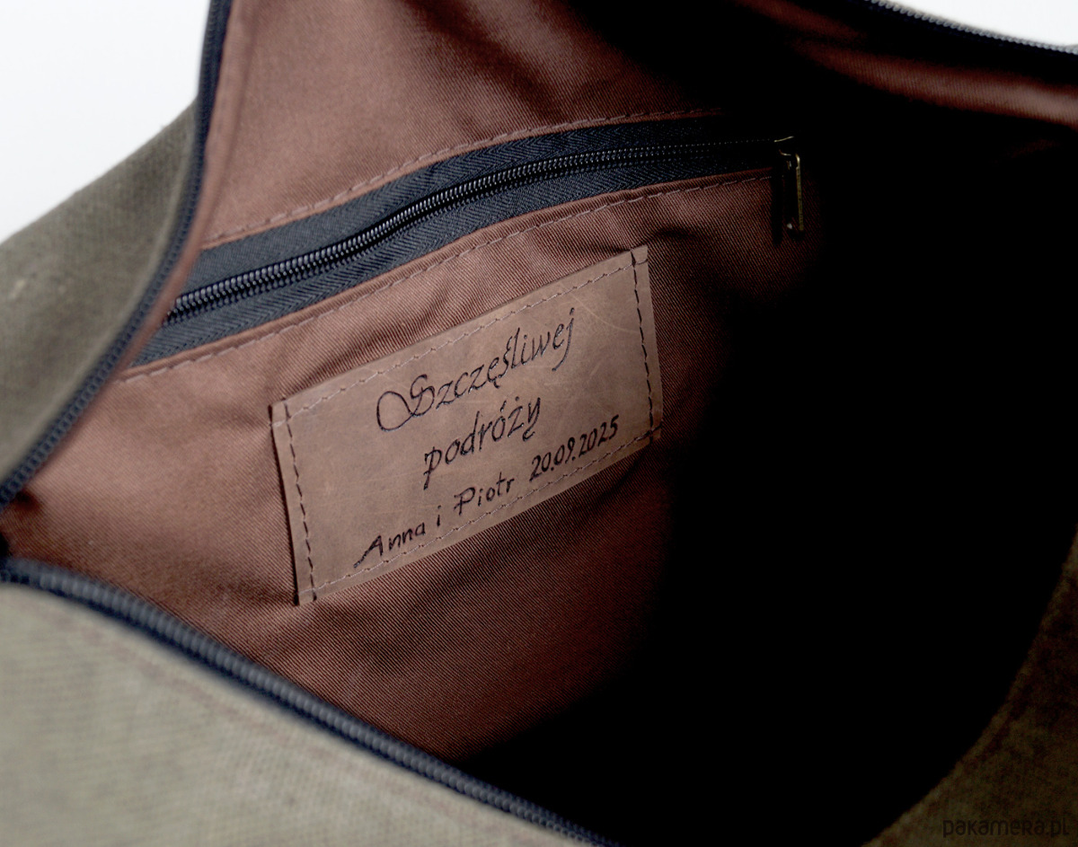 Możliwość wypalenia osobistej dedykacji wewnątrz torby.
