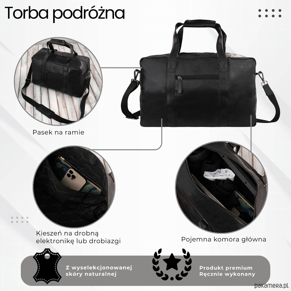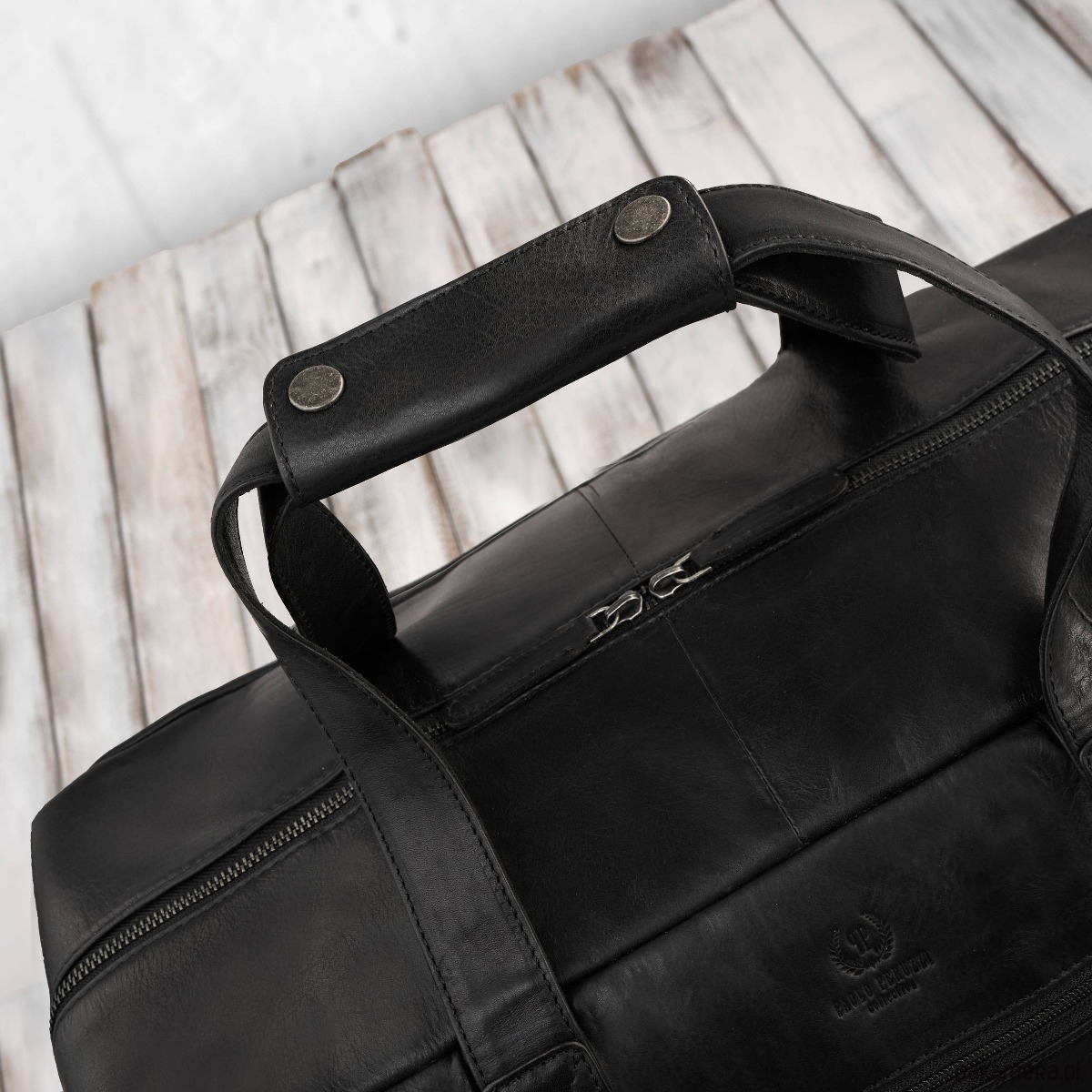 Torba podróżna męska skórzana duża pojemna czarna Paolo Peruzzi SL-10-BL