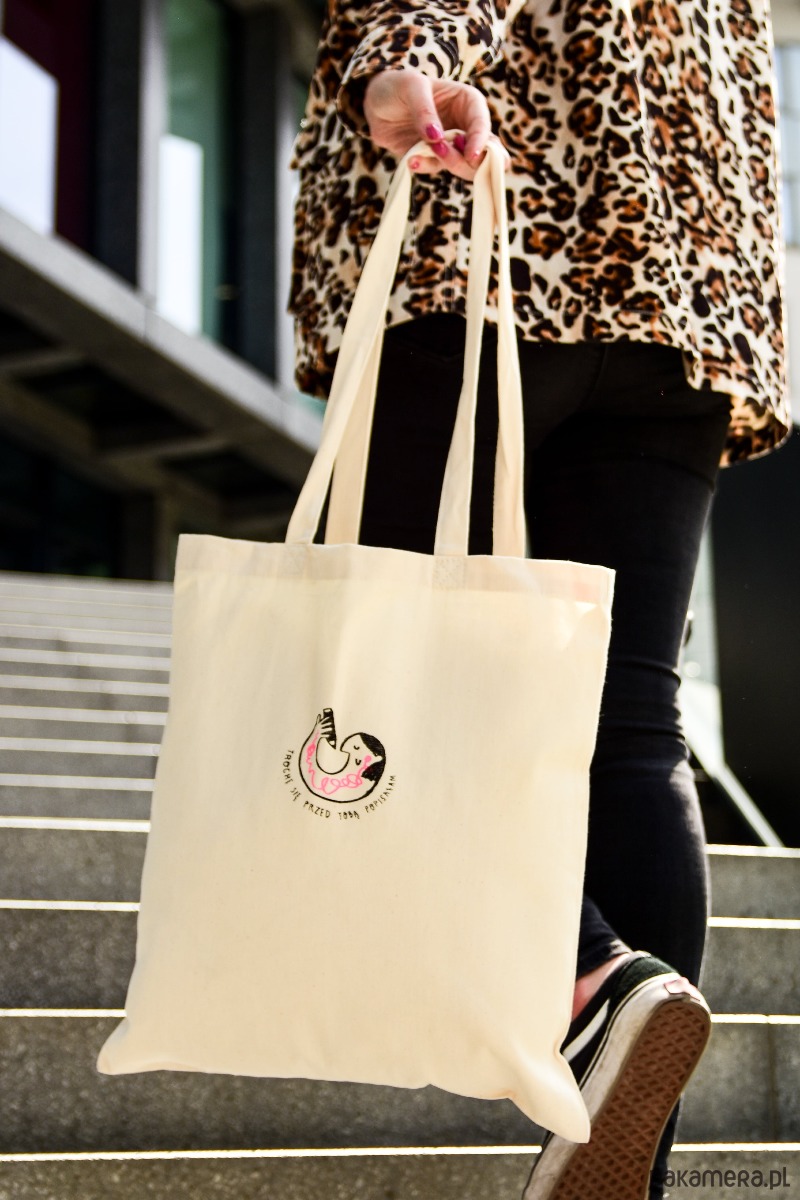 Torby bawełniane w kolorze ecru z autorskim projektem nadruku.
