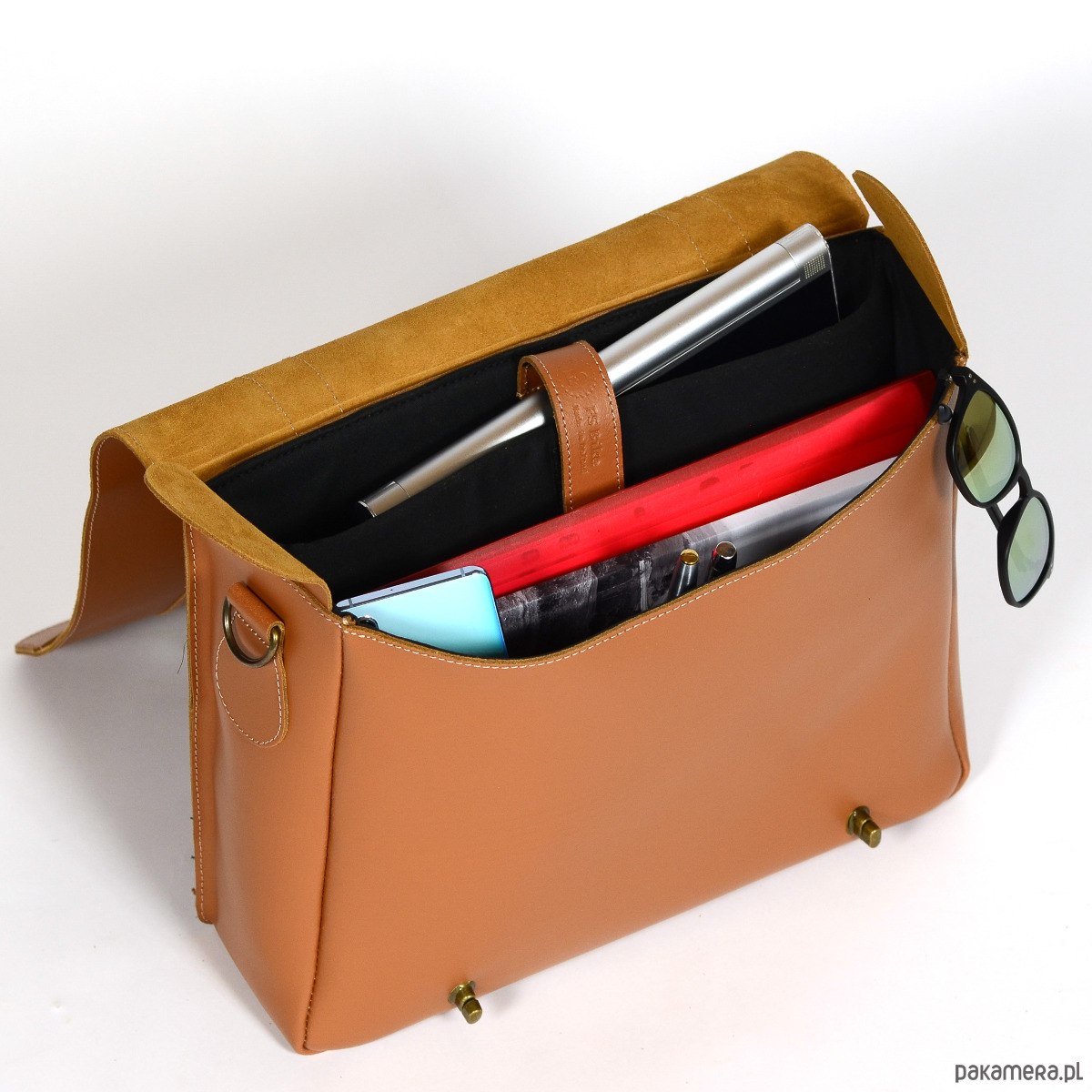 SKÓRZANA TORBA ROWEROWA – jasny brąz