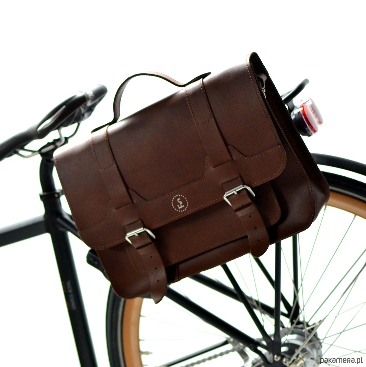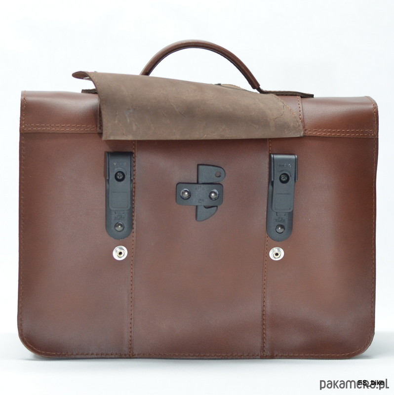 Klasyczna skórzana sakwa wykonana ręcznie ze skóry hydrofobowej, wyposażona w specjalny system haków mocujących, który zapewnia wygodne i szybkie przymocowanie torby do bagażnika roweru jak i jej zdjęcie. Po wypięciu torby z bagażnika haki dyskretnie chowają się pod skórzaną klapką, która zamienia sakwę rowerową w klasyczną torbę. Idealna torba dla rowerzystów dojeżdżających do pracy, który cenią niebanalny styl i wysoką jakość.