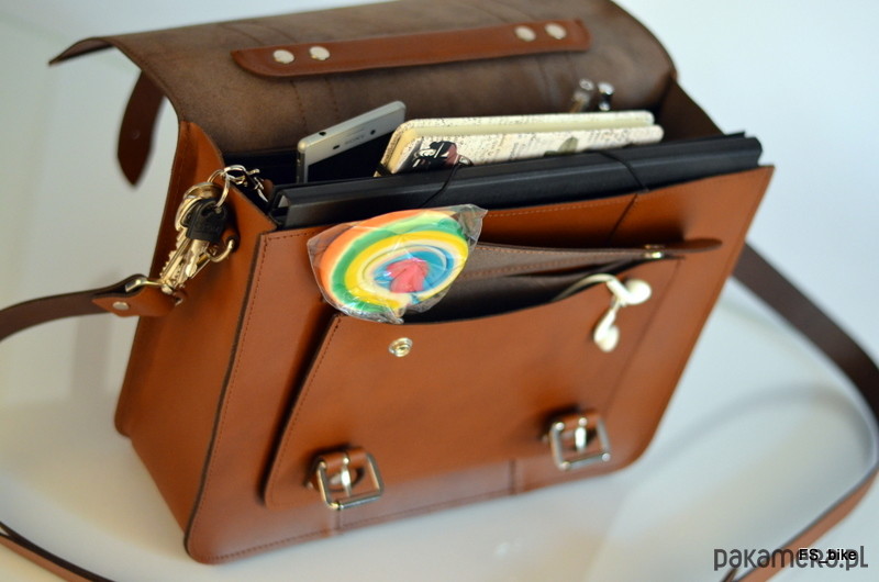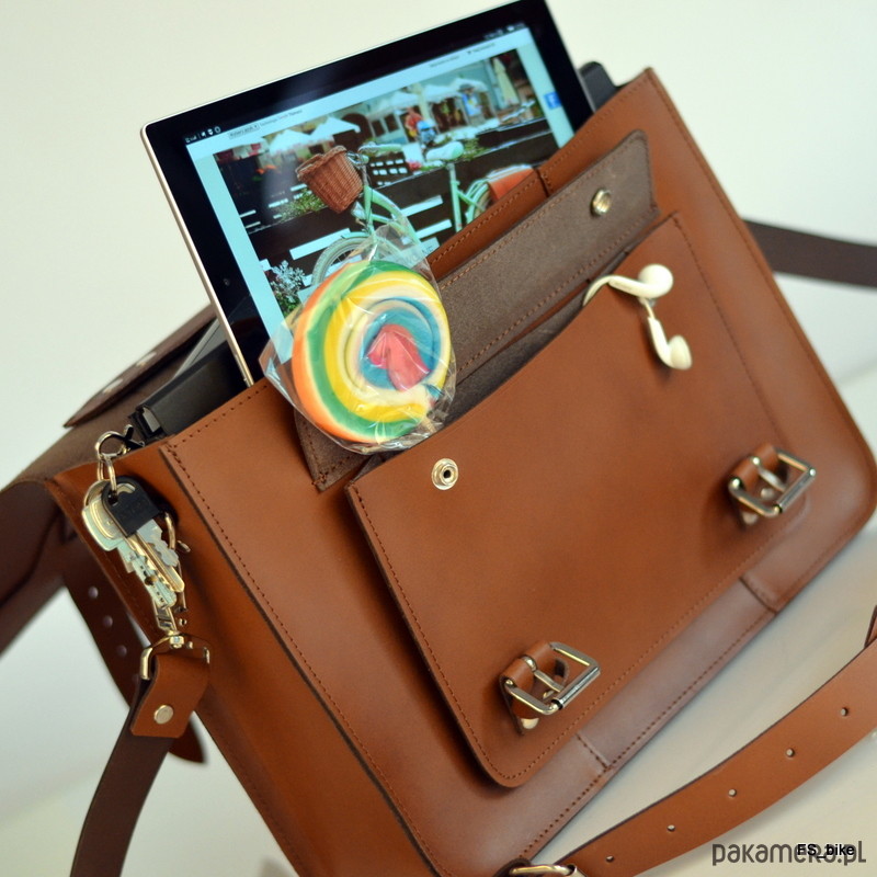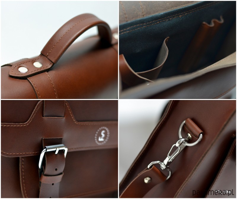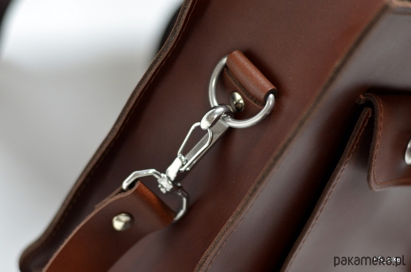 Torba mieści dokumenty w formacie A4. Sakwa została wyprodukowana z naturalnej skóry bydlęcej w technologii hydrofobowej – co zapewnia wyższą odporność na warunki atmosferyczne, w tym szczególnie deszcz, dzięki czemu będzie wspaniałym towarzyszem wszystkich rowerzystów, którzy regularnie dojeżdżają do pracy rowerem.