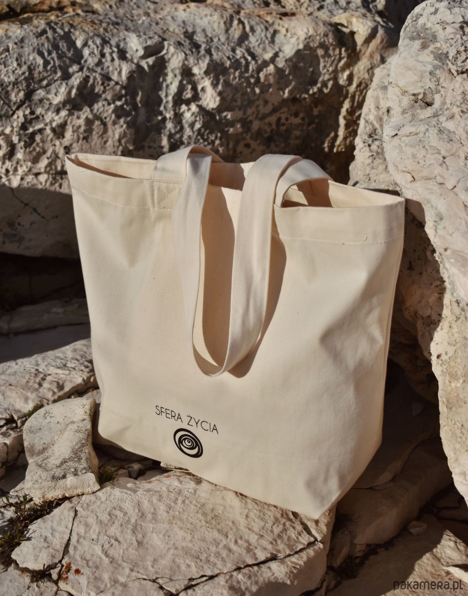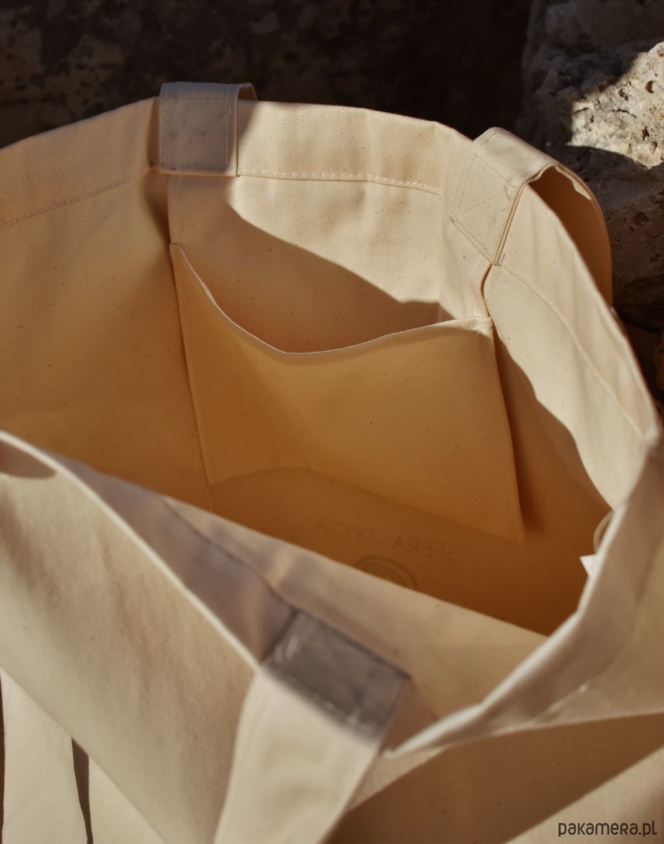 Torba wykonana z wysokiej jakości bawełny 280g/m2 w naturalnym kolorze beżowym.