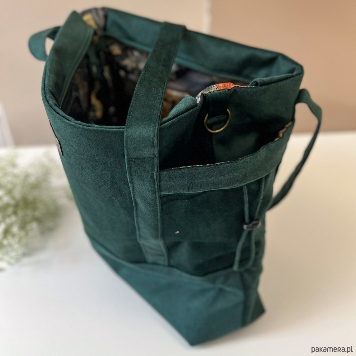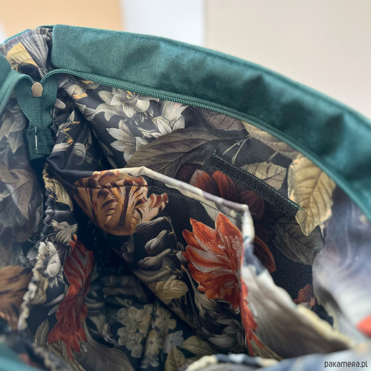 Torba shopper handy to pojemna, klasyczna torba na ramię. Shopperka wykonana jest z tkaniny welurowej, która jest niezwykle przyjemna w dotyku. Torba podszyta jest wodoodporną podszewką o kwiatowym wzorze. W środku ma kieszeń na zamek oraz dużą przegrodę zapinaną na rzep w której można przechować urządzenie elektroniczne. Główna komora torby jest zapinana na zamek. Ten model świetnie się sprawdzi osobą, które potrzebują pojemnej torby do pracy lub szkoły. Po bokach torby można dopiąć dodatkowy długi, regulowany pasek.