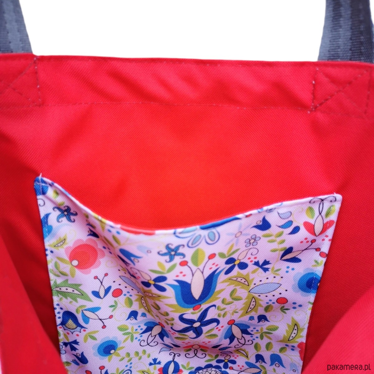 Torba uszyta z wysokiej jakości materiału wodoodpornego z nadrukiem. W środku wodoodporna czerwona podszewka i kieszonka. Dzięki zastosowaniu materiału wodoodpornego, torba jest łatwa w utrzymaniu czystości.