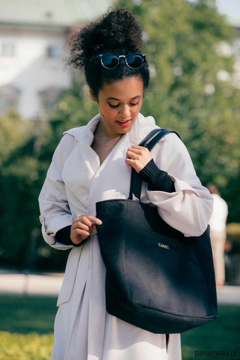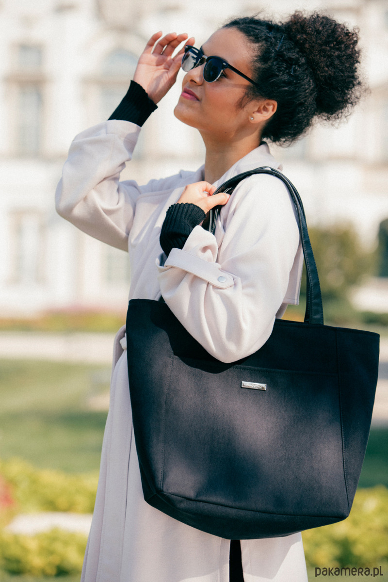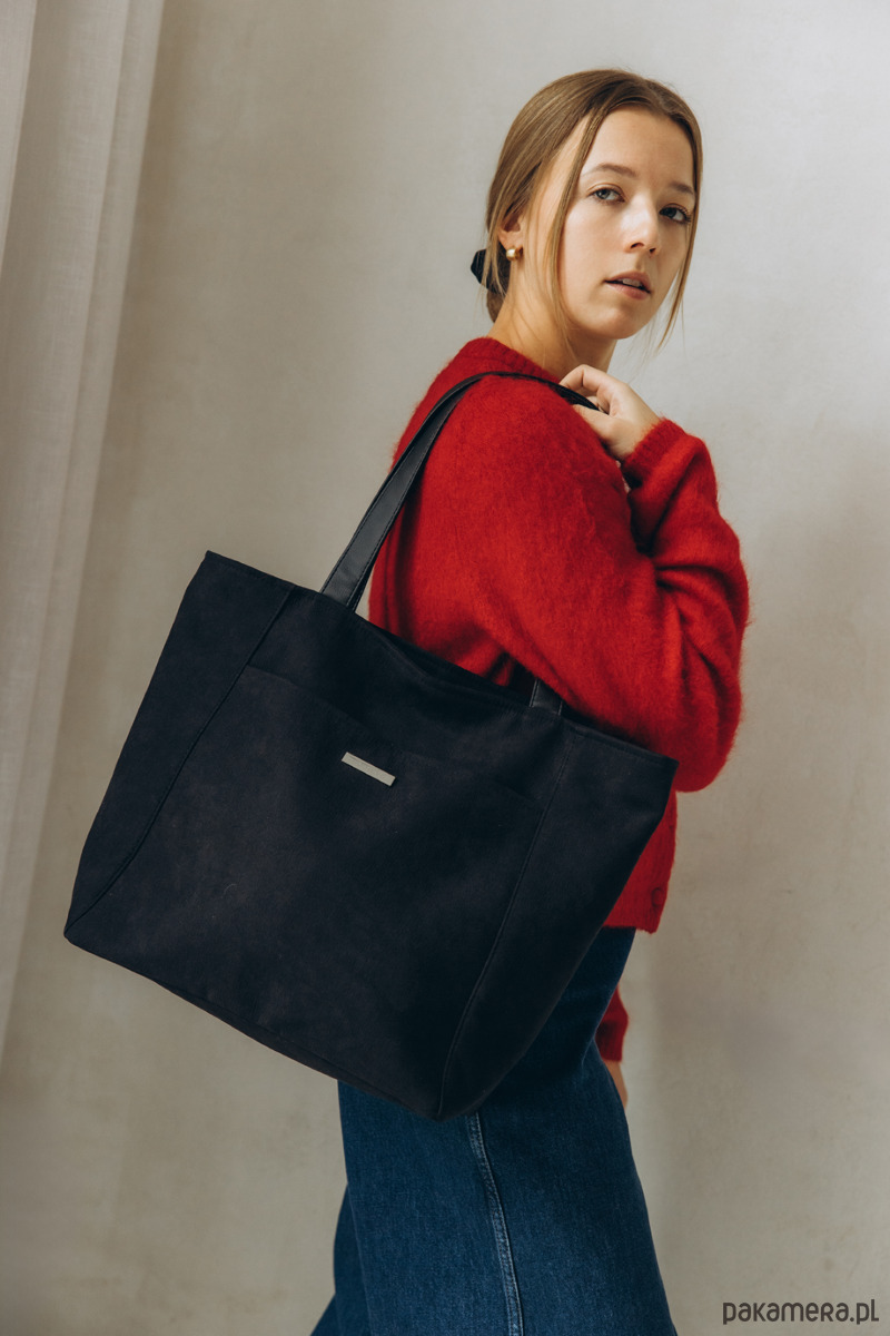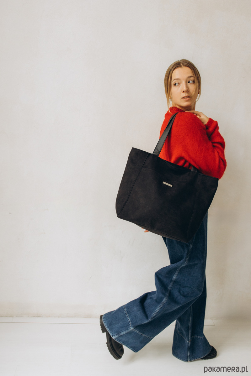 Torba Shopper z czarnego nubuku tapicerskiego.