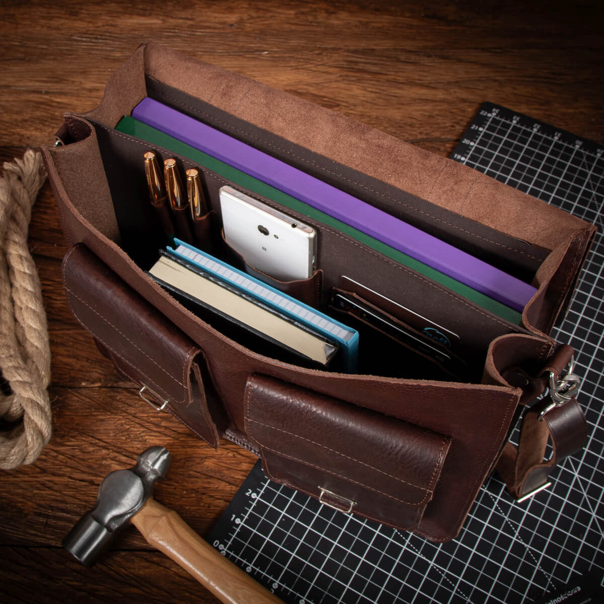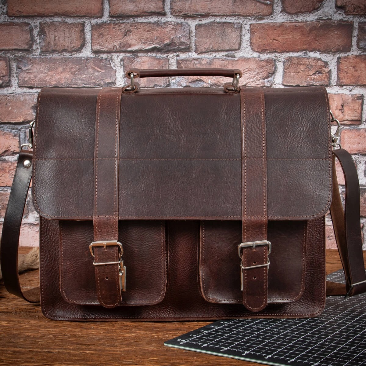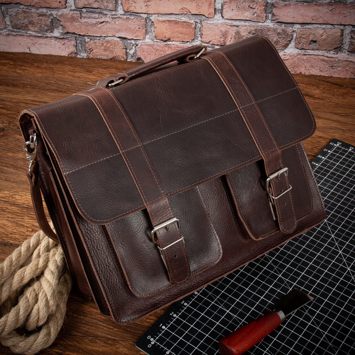 Torba Skórzana do Pracy Męska Vintage Ciemny Brąz Czekoladowy Belveder Br51