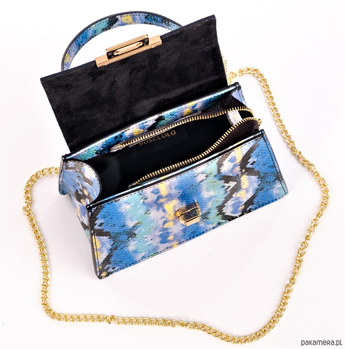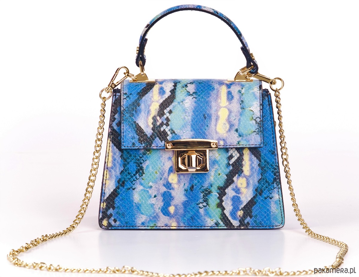 Ozdobne zamknięcie, dopinany łańcuszek do przewieszenia torebki przez ramię.