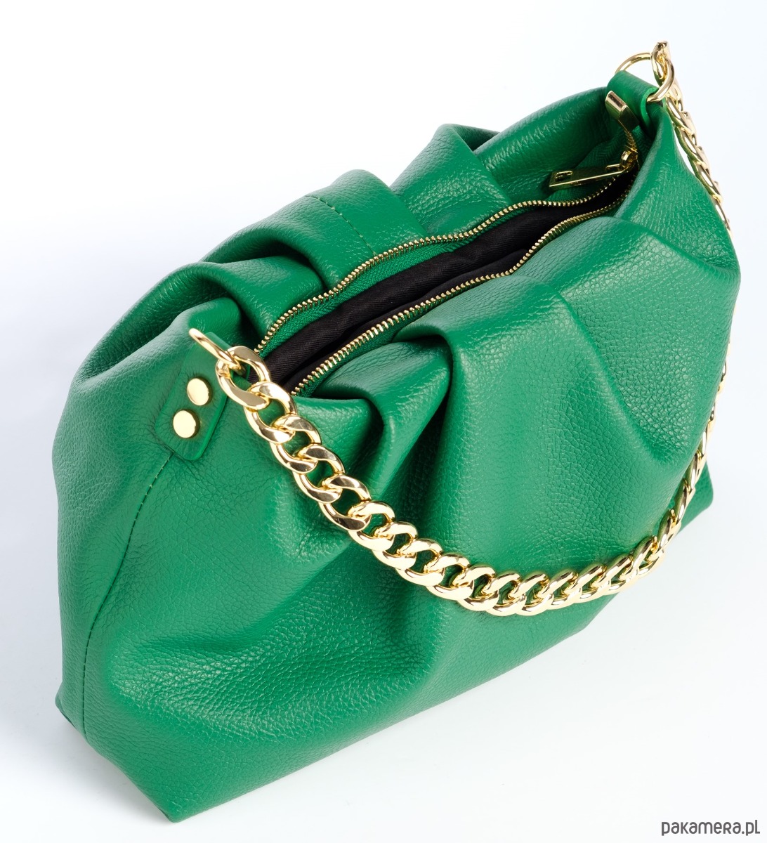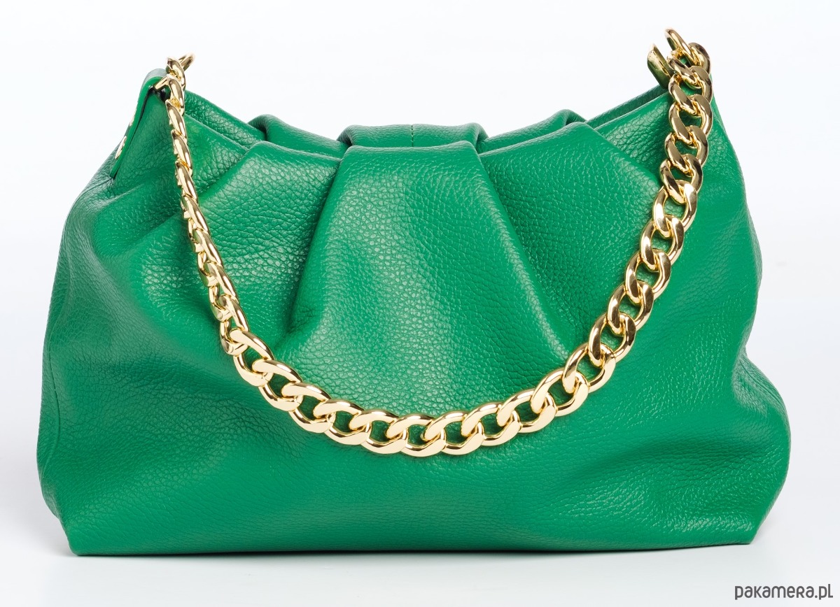 Elegancka torebka ze skóry naturalnej, marszczona, do ręki lub na ramię, idealna do codziennych stylizacji.
