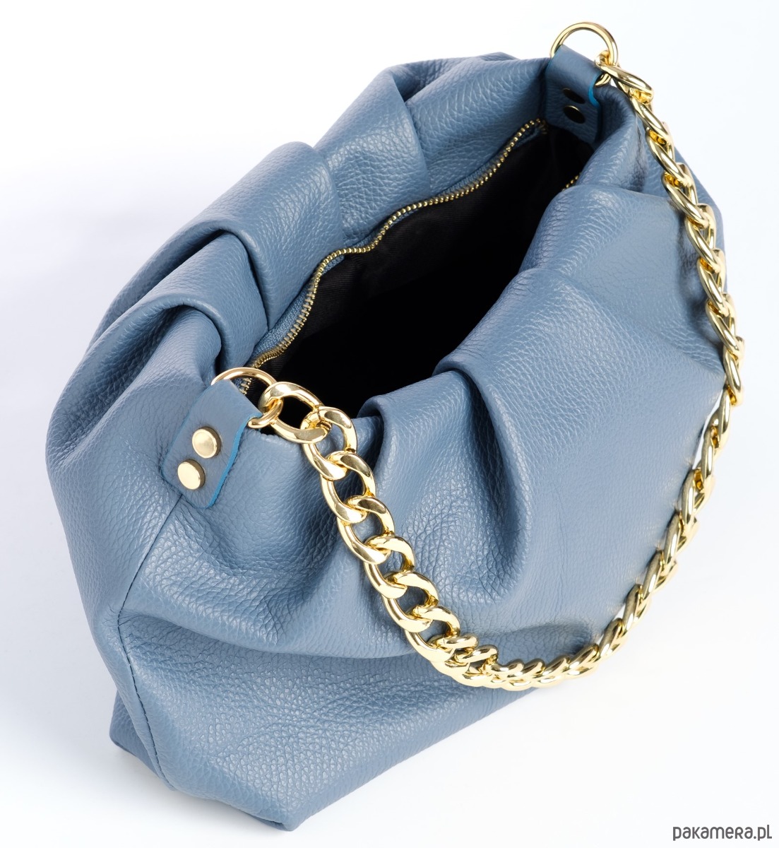 Elegancka torebka ze skóry naturalnej, marszczona, do ręki lub na ramię, idealna do codziennych stylizacji.