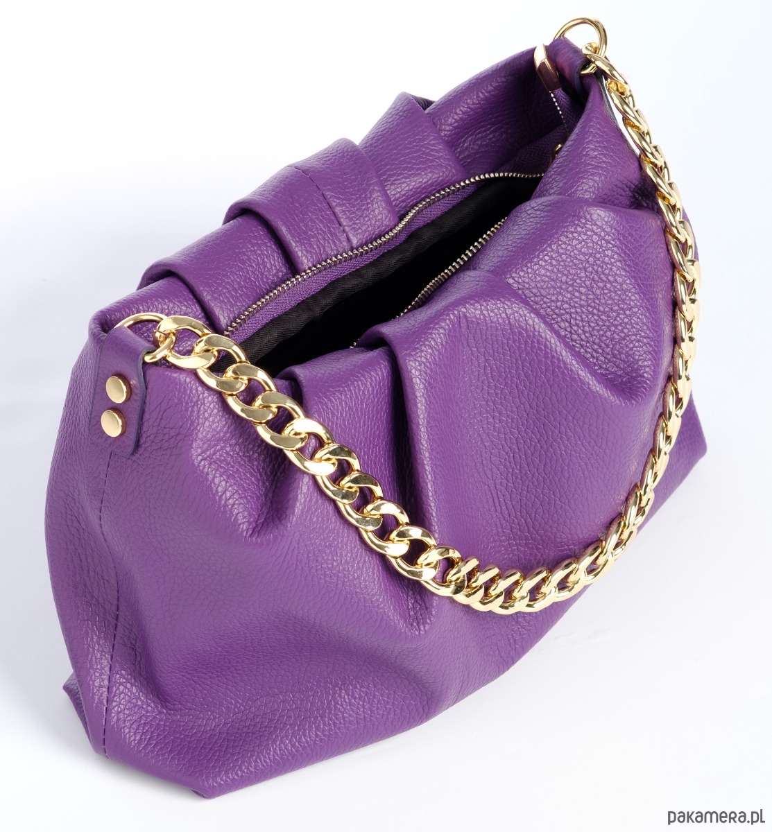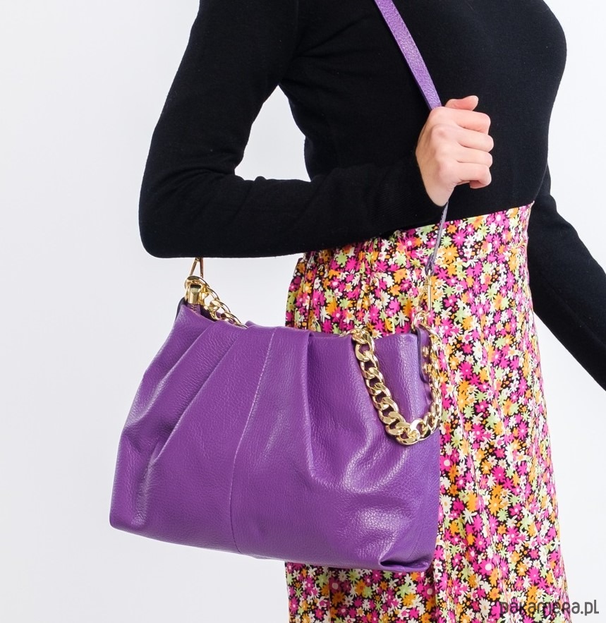 Elegancka torebka ze skóry naturalnej, marszczona, do ręki lub na ramię, idealna do codziennych stylizacji.