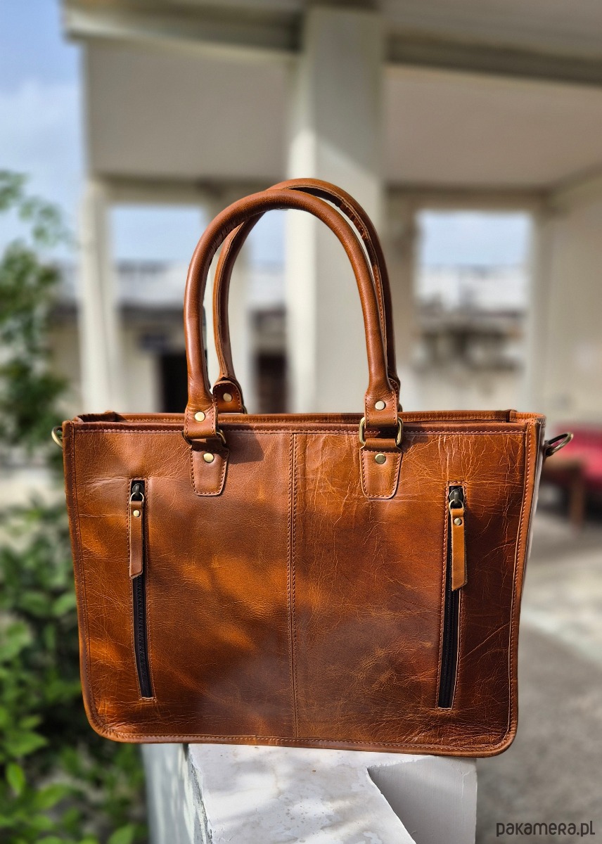 Torba skórzana ręcznie robiona Kochi duża pojemna torba z paskiem do ręki