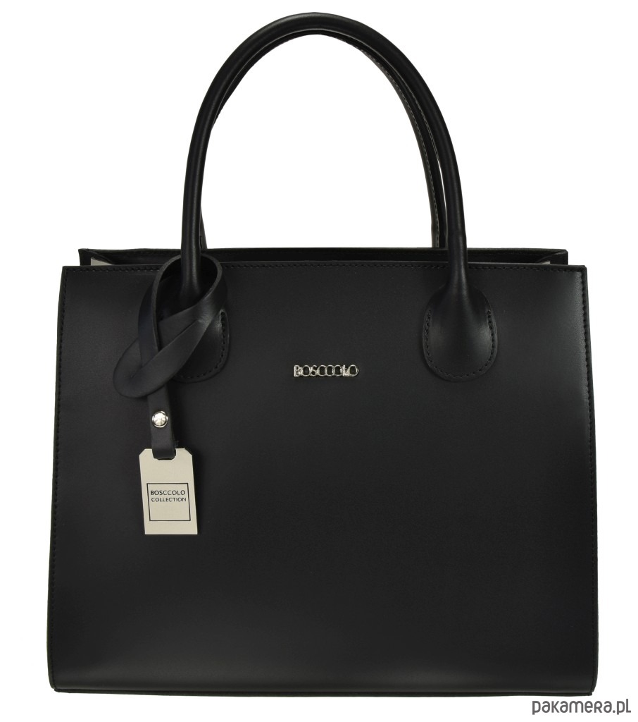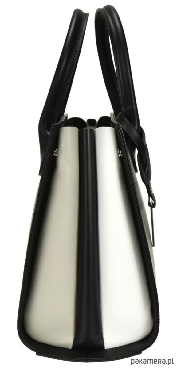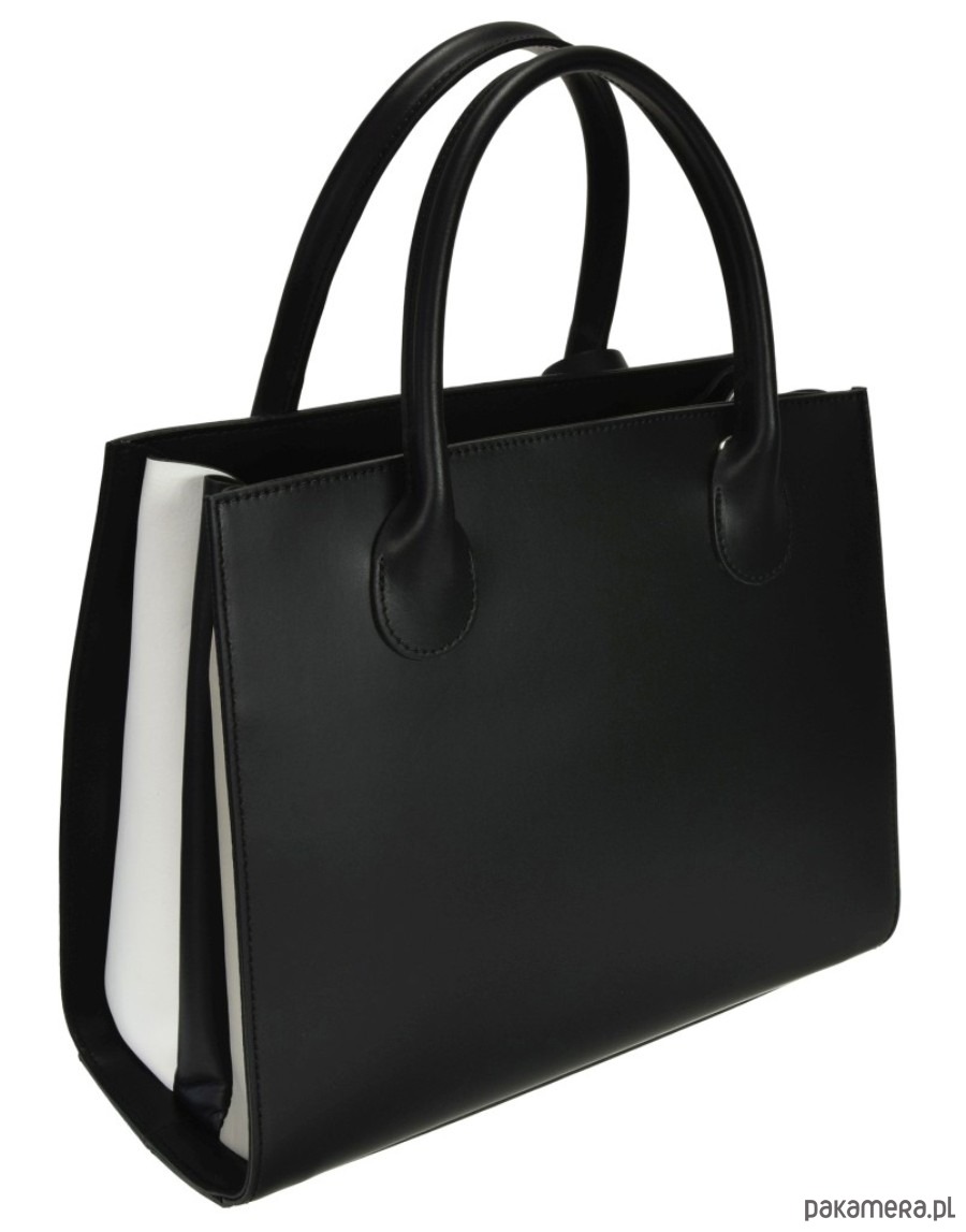 Elegancka torebka ze skóry naturalnej, boki z ozdobnym łączeniem kolorów.