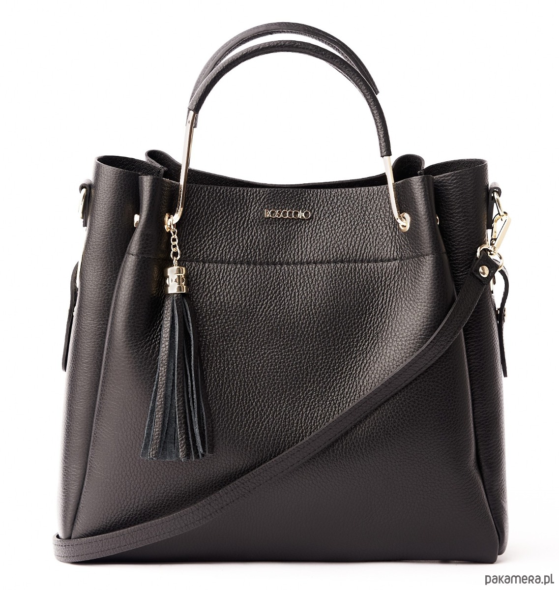 Elegancka torba ze skóry naturalnej, idealna do codziennych stylizacji, wielkość miesząca A4, dopinany pasek.