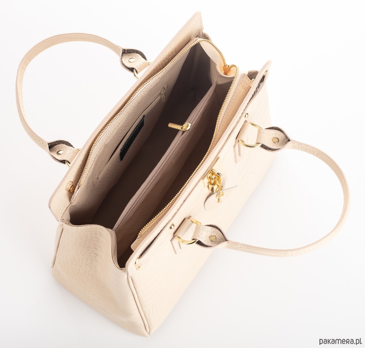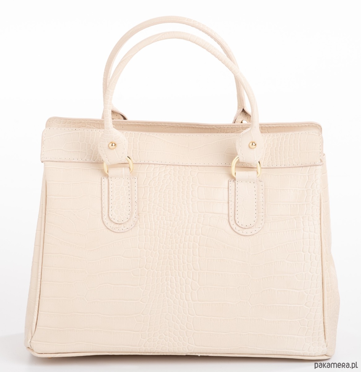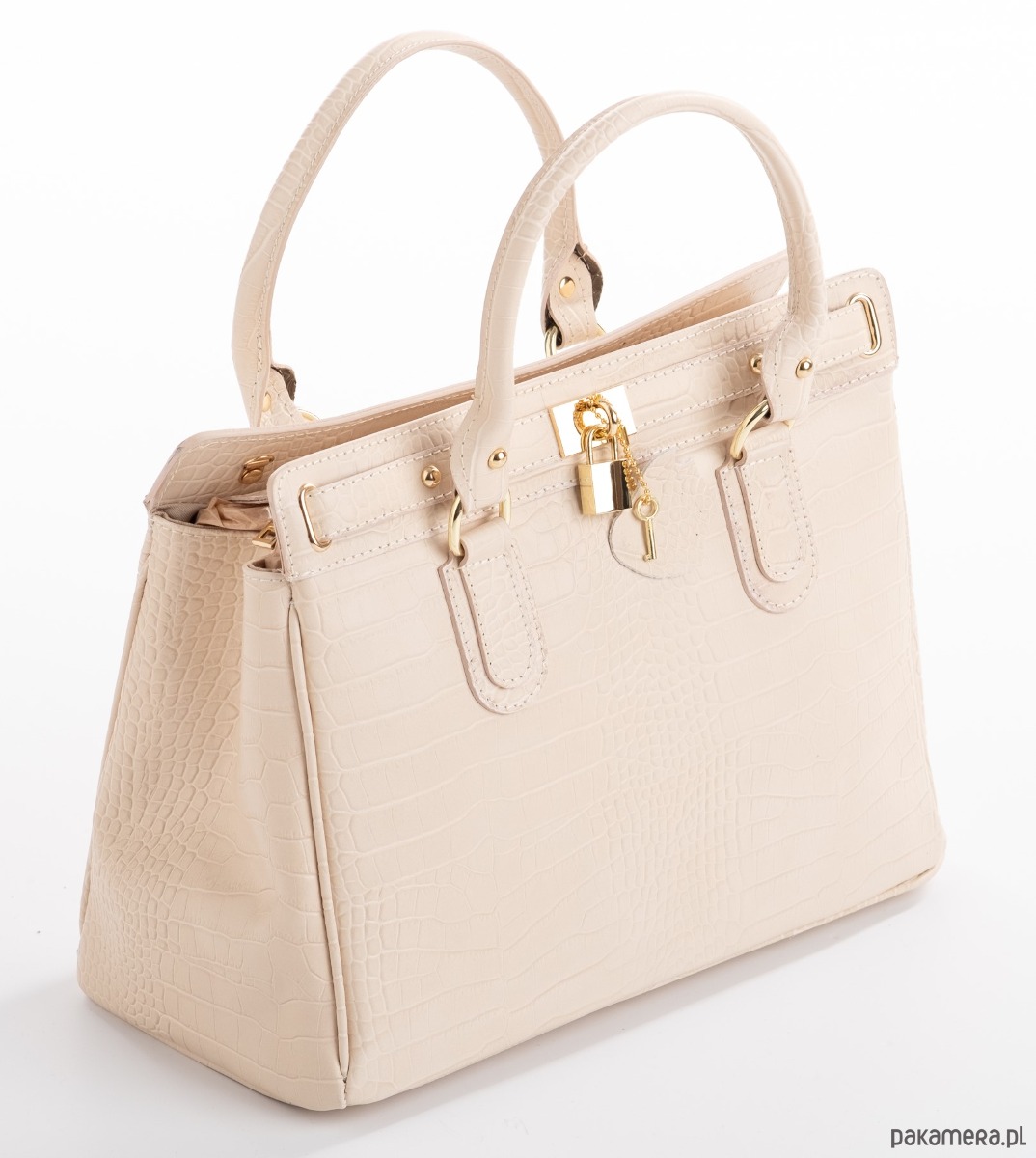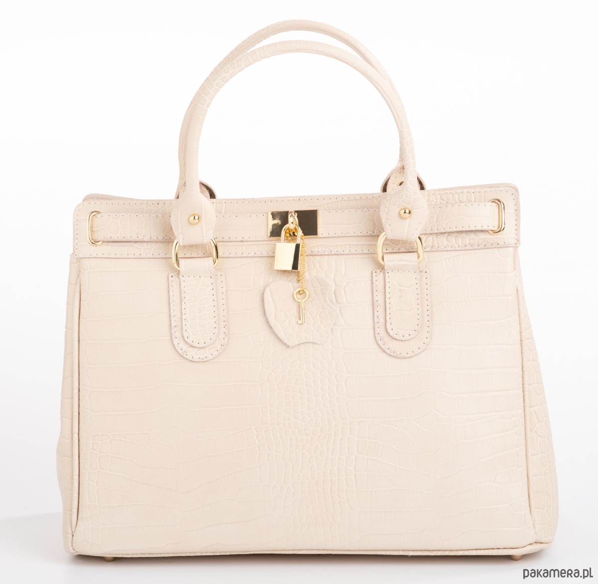 Torba do ręki lub na ramię, w komplecie dopinany długi pasek, ozdobne okucia - pasek z kłódką.