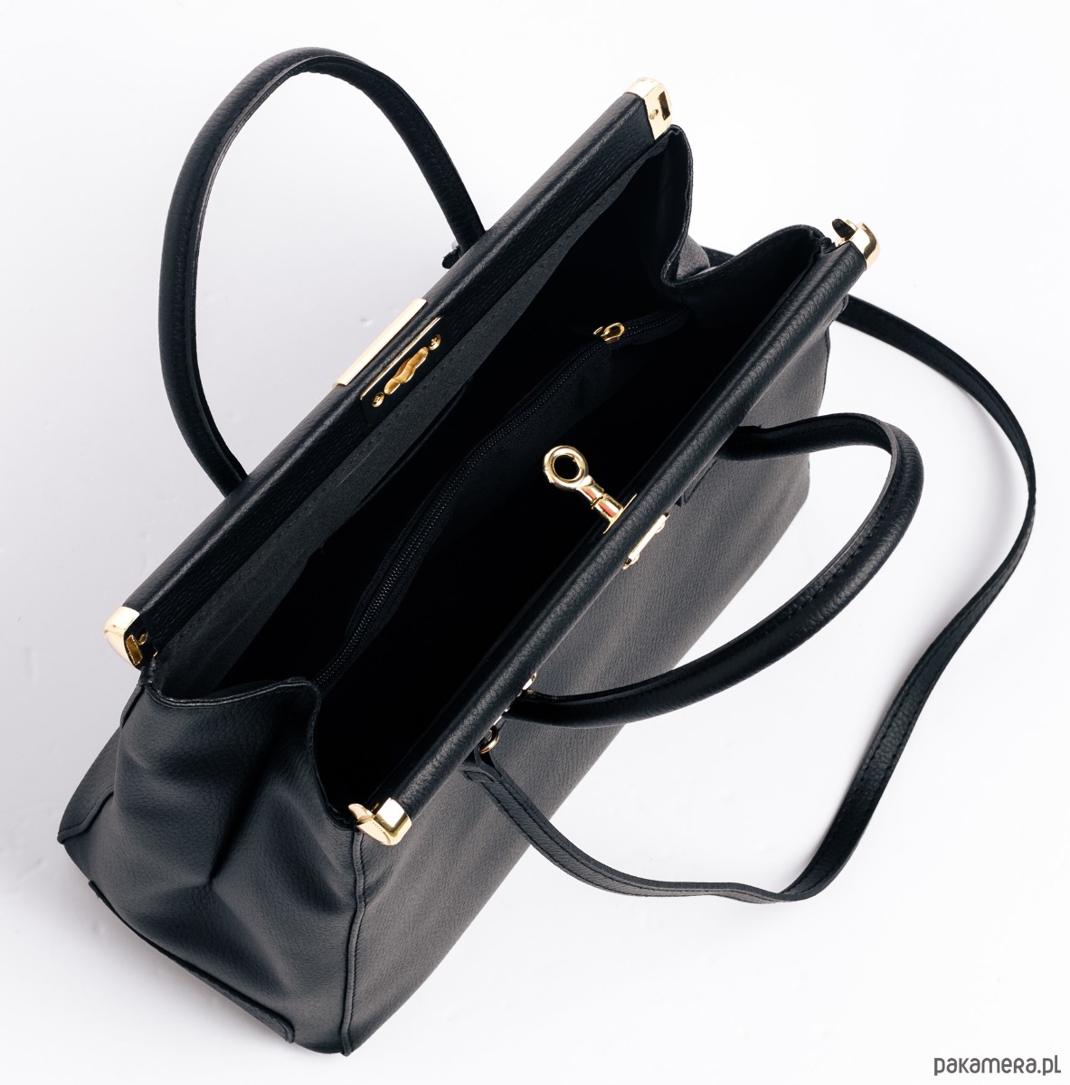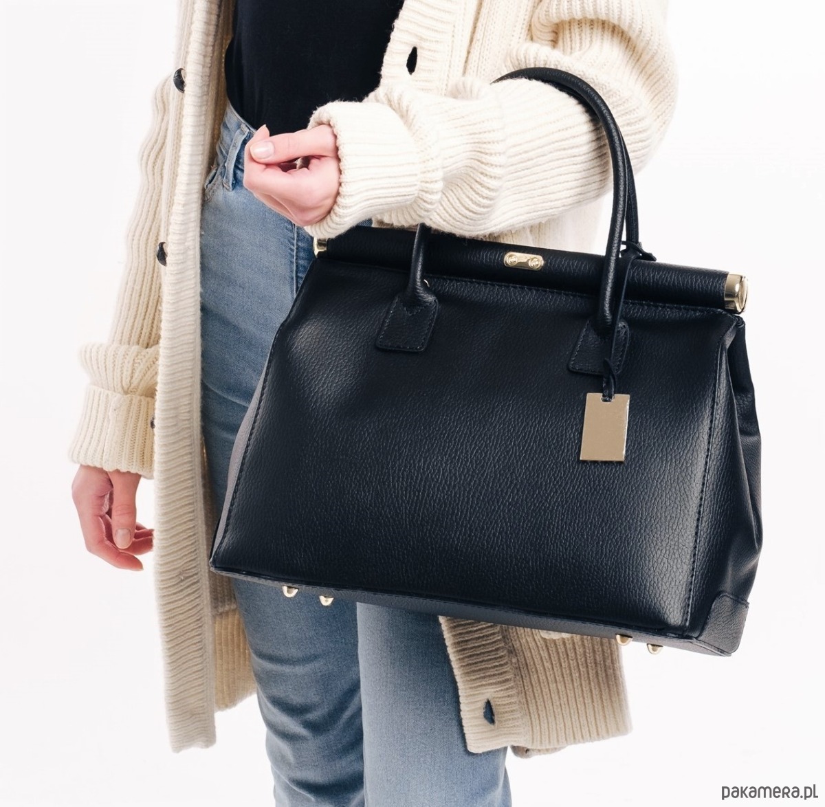 Elegancka torba ze skóry naturalnej. Ozdobne okucia.