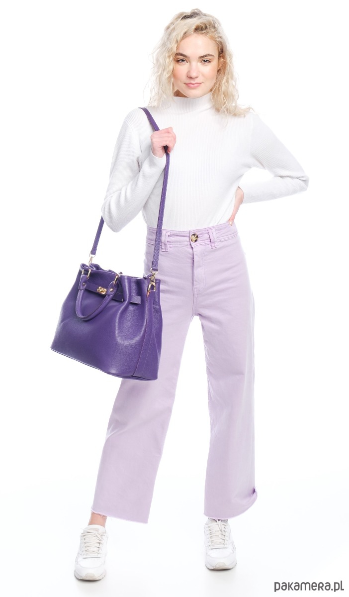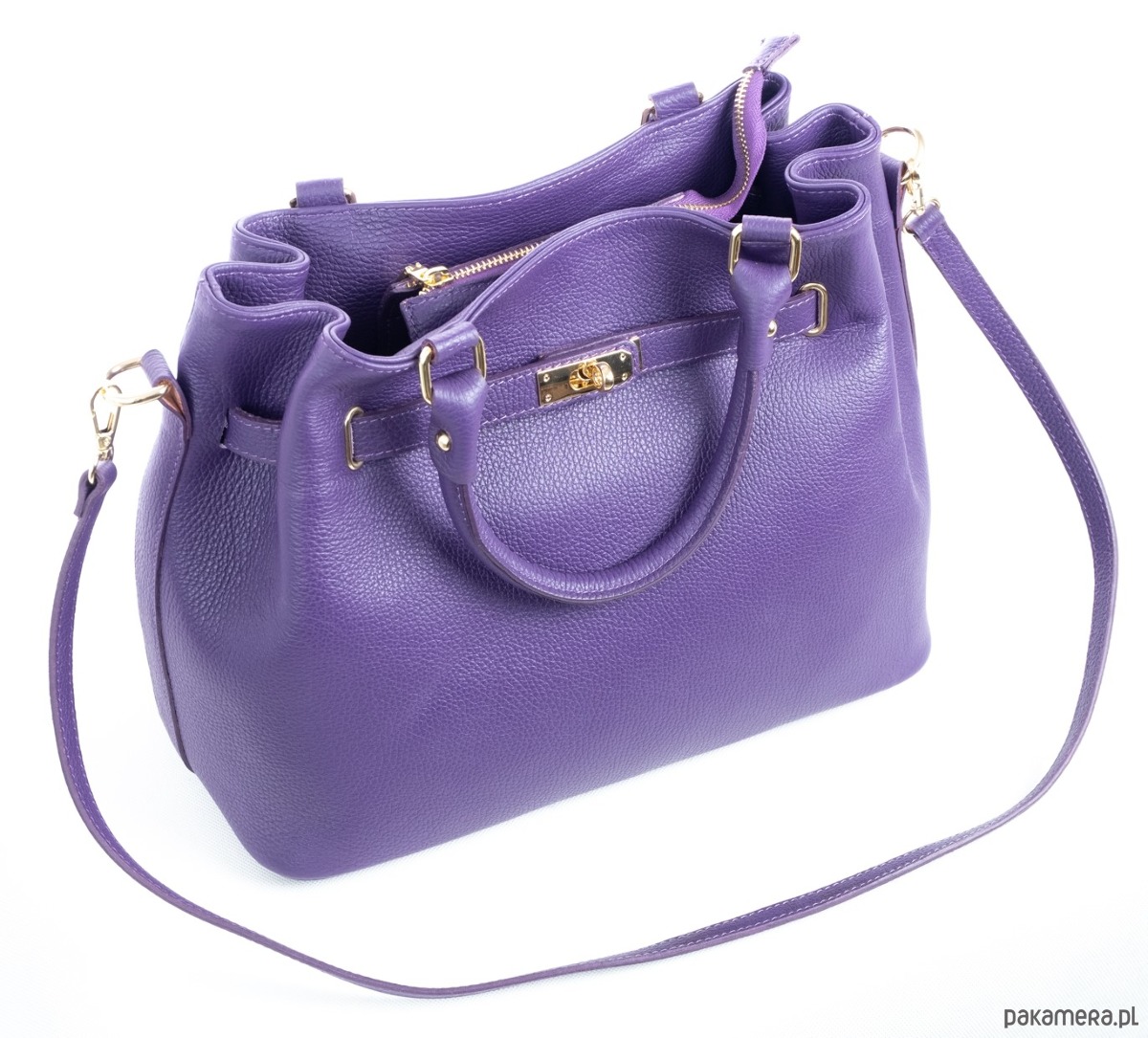 Elegancka torba ze skóry naturalnej. Ozdobne okucia - pasek z zapięciem.