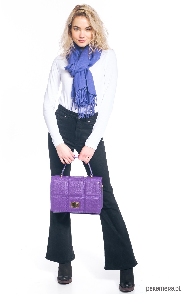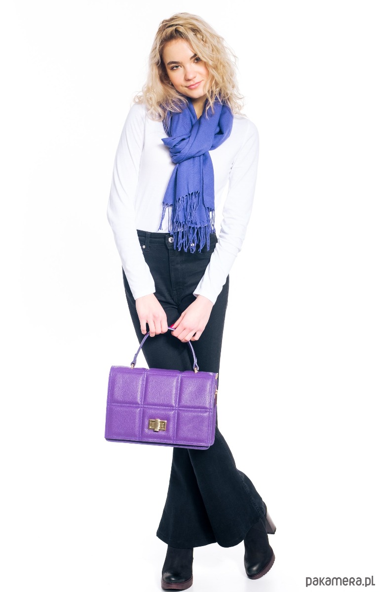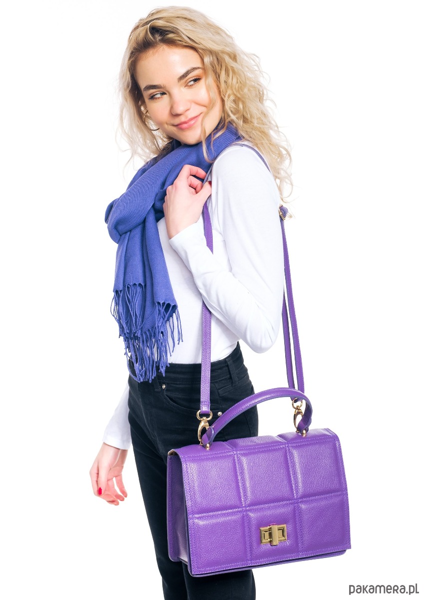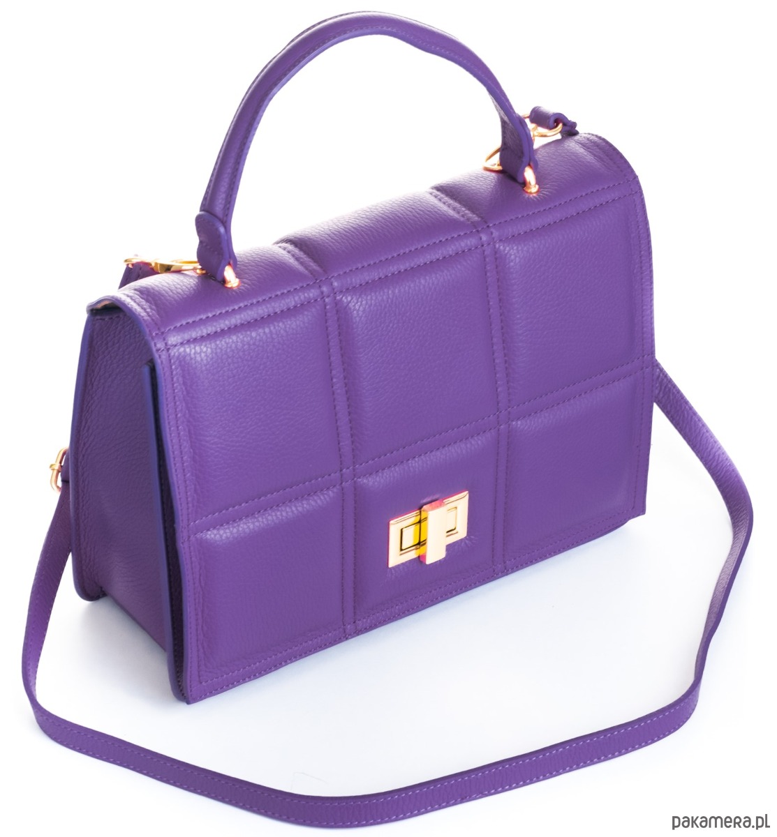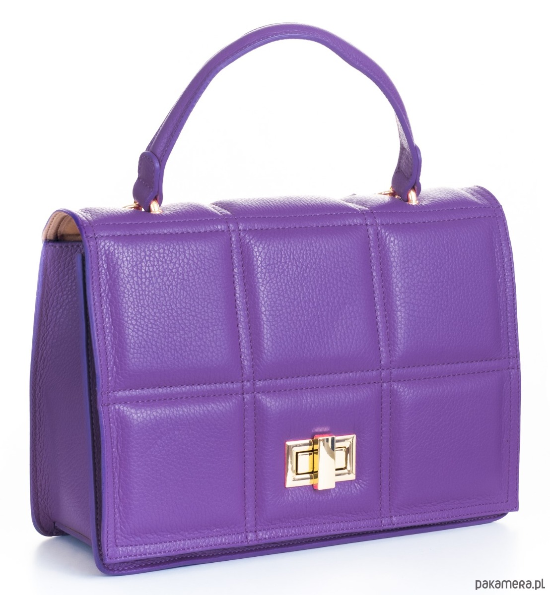 Elegancka torba do ręki lub na ramię w formie małej aktówki, ze skóry naturalnej, geometryczne przeszycia,