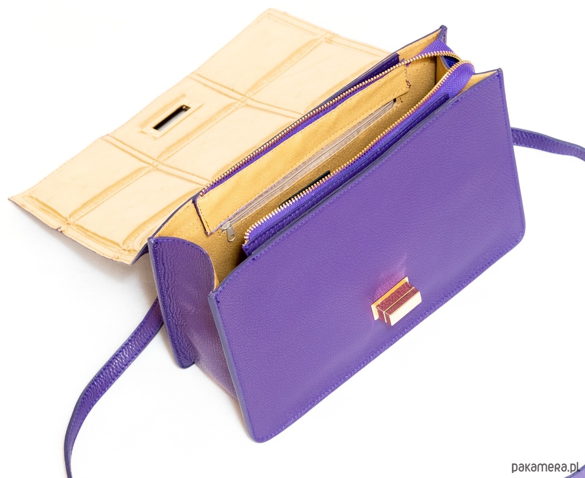 Zamykana na suwak i dodatkowo na klapę z zamkiem. Dopinany pasek.
