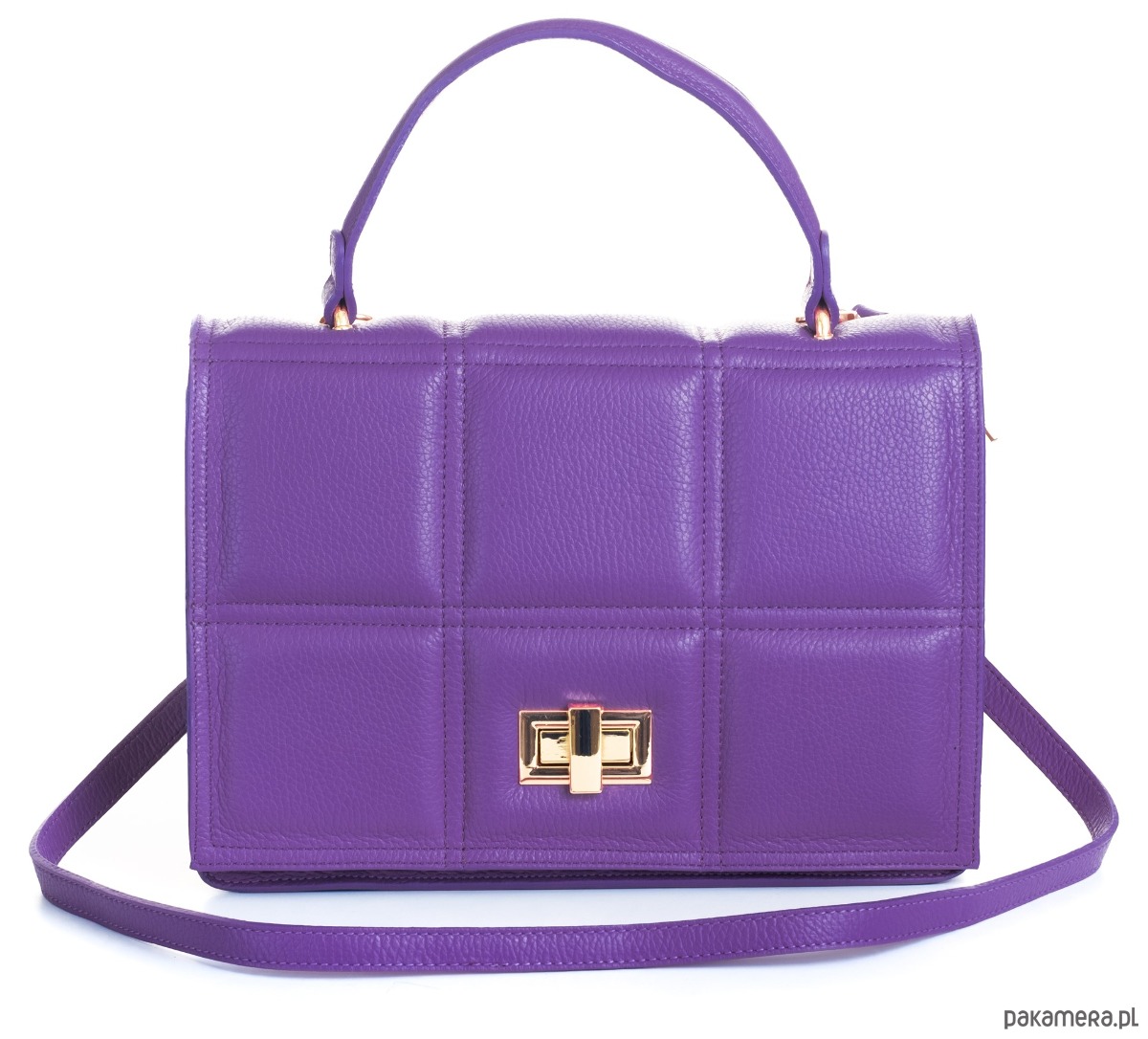 Elegancka torba do ręki lub na ramię w formie małej aktówki, ze skóry naturalnej, geometryczne przeszycia,