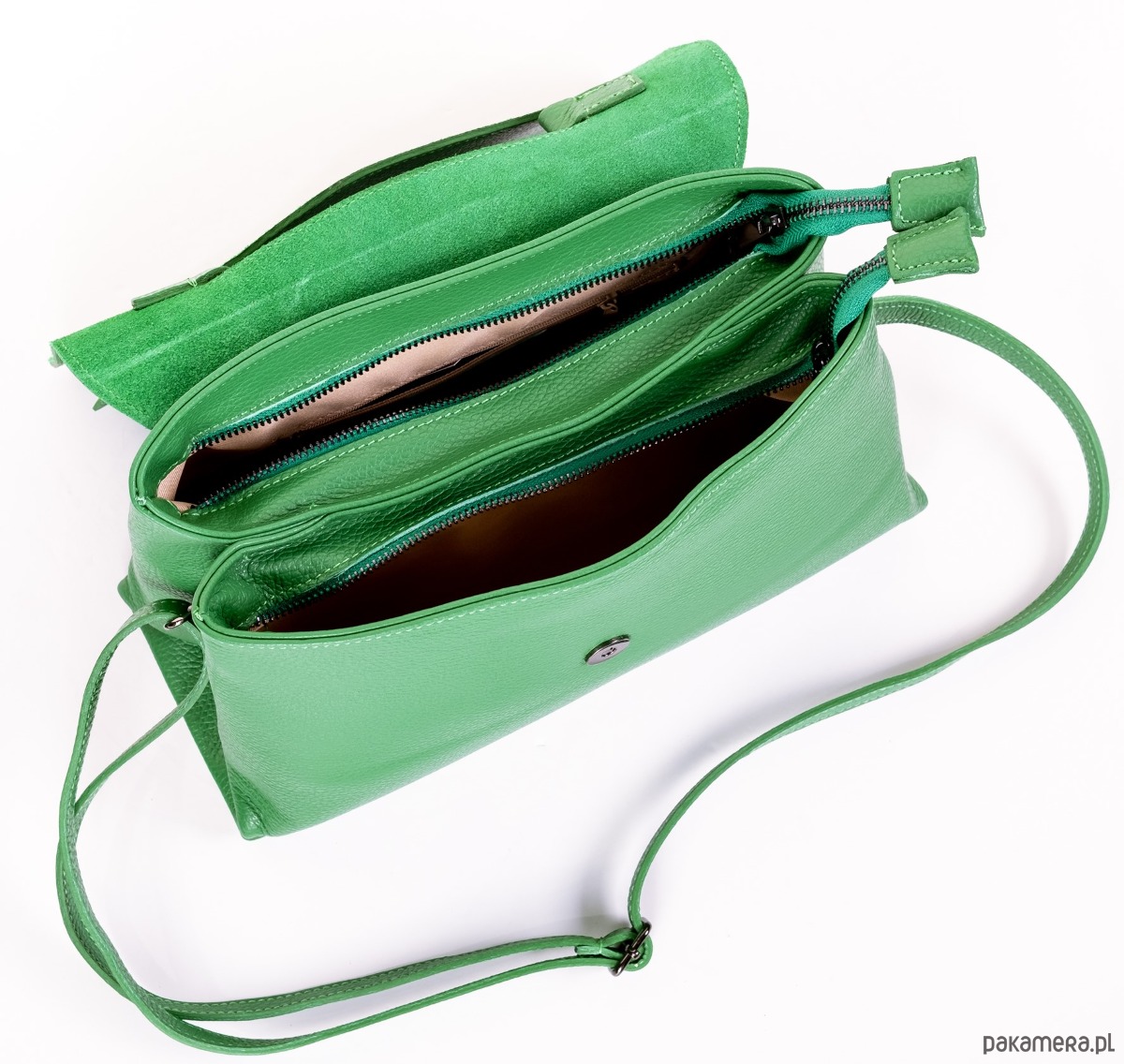 Elegancka torebka ze skóry naturalnej, do ręki lub przez ramię, mieści A4.