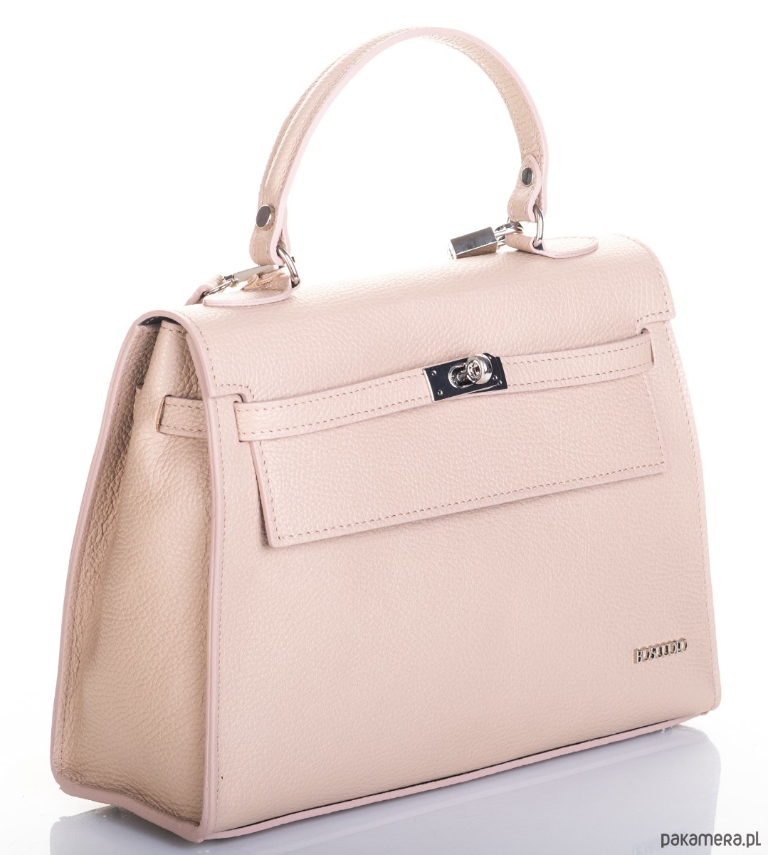 Torba do ręki lub na ramię, elegancka forma kuferka. Pasek w komplecie i zdobna kłódeczka.
