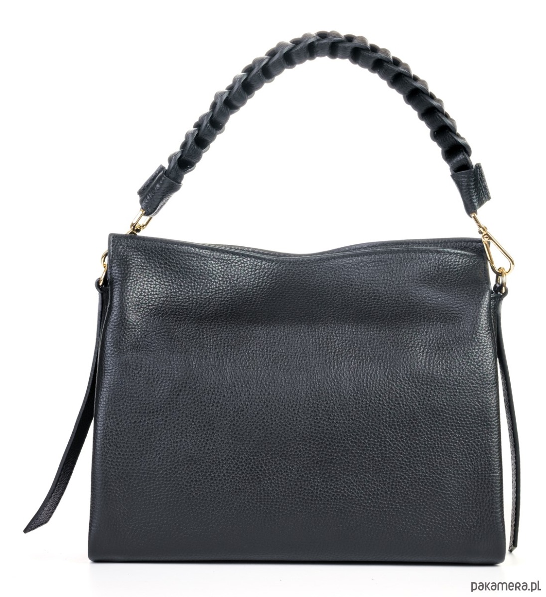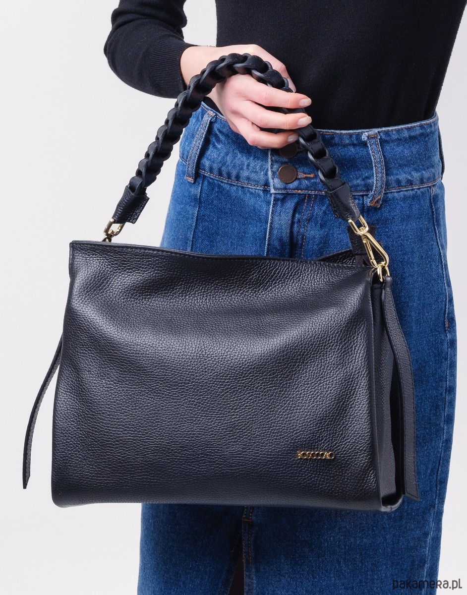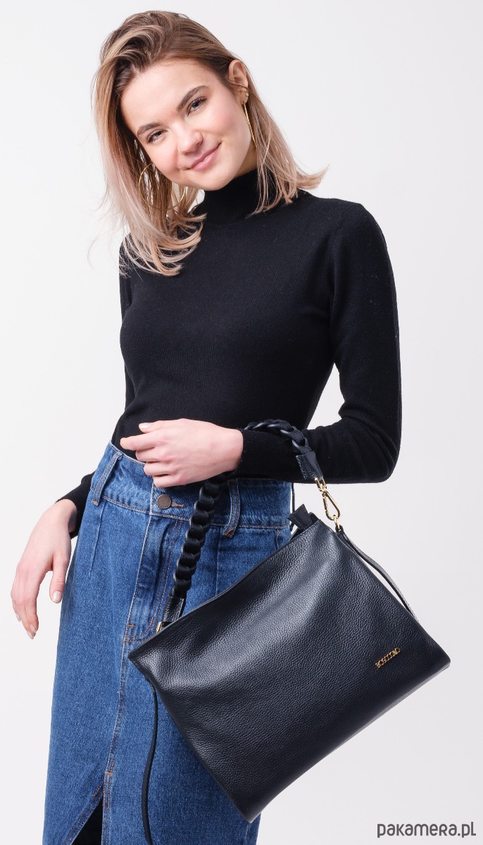 Elegancka torba ze skóry naturalnej. Ozdobny, pleciony uchwyt. Mieści format A4