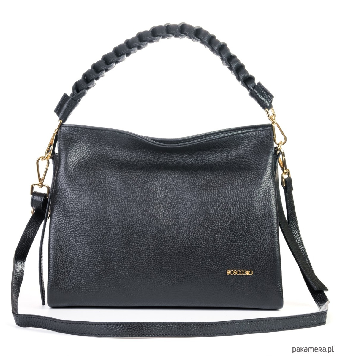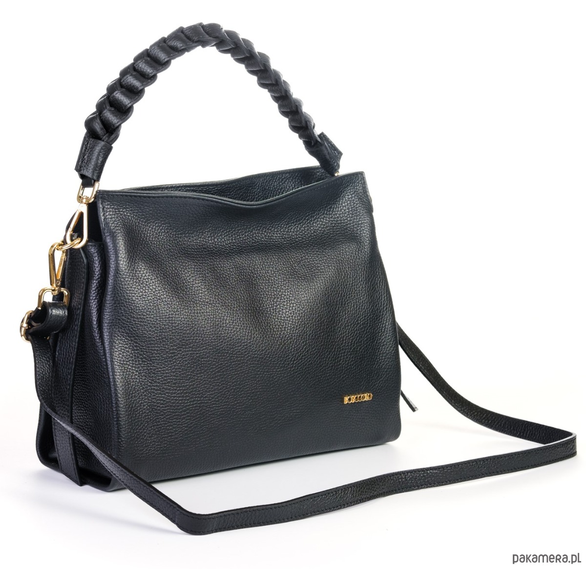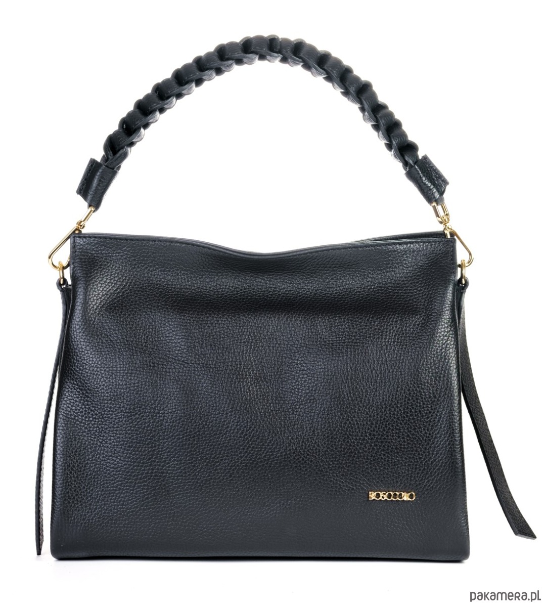 Elegancka torba ze skóry naturalnej. Ozdobny, pleciony uchwyt. Mieści format A4