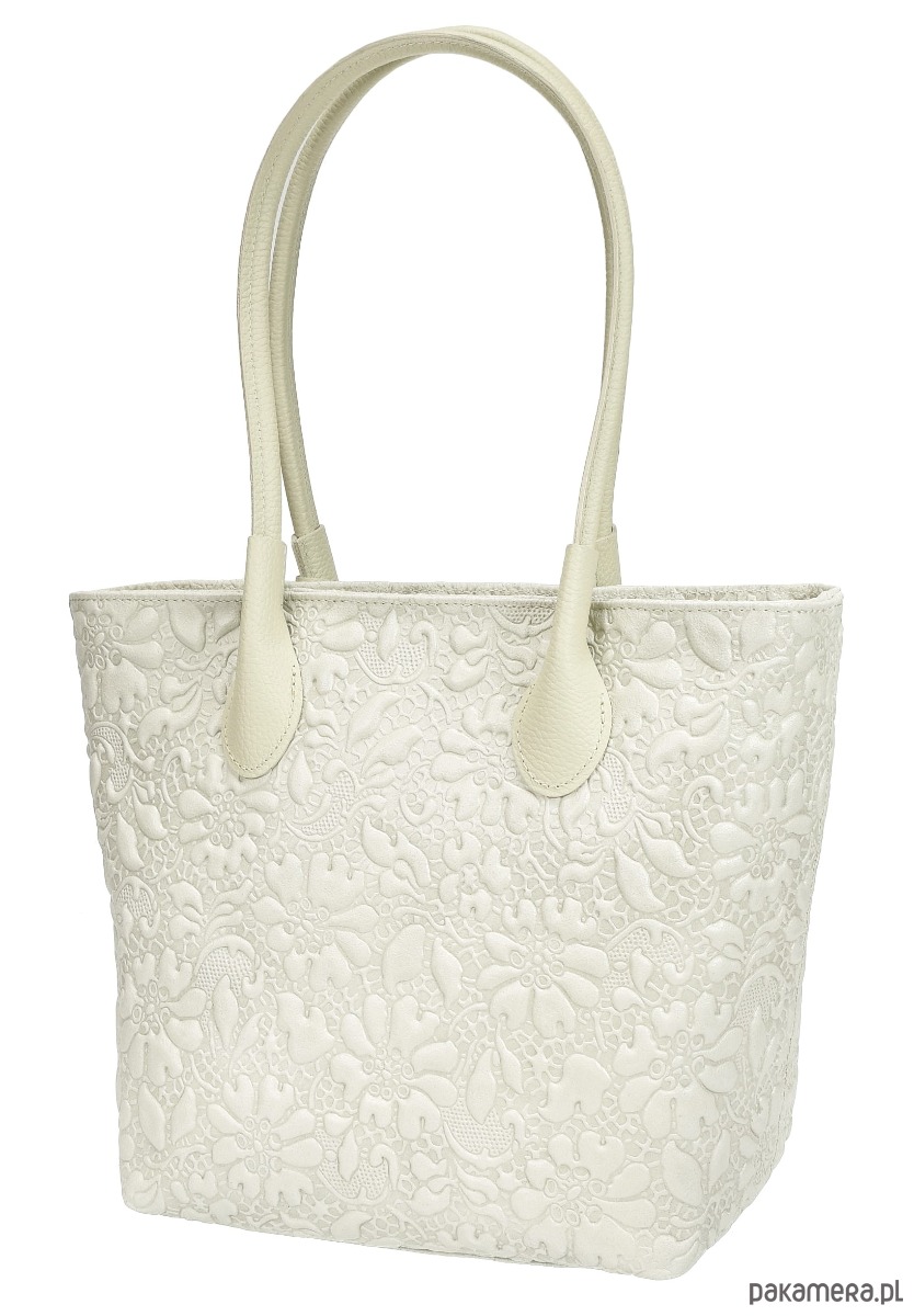 Elegancka torba ze skóry naturalnej, wytłaczana w kwiaty, idealna do codziennych stylizacji.